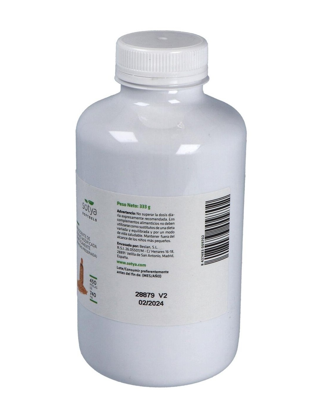 Perlas con 500mg de aceite de lecitina de soja no GMO, en una cápsula de gelatina y glicerina.