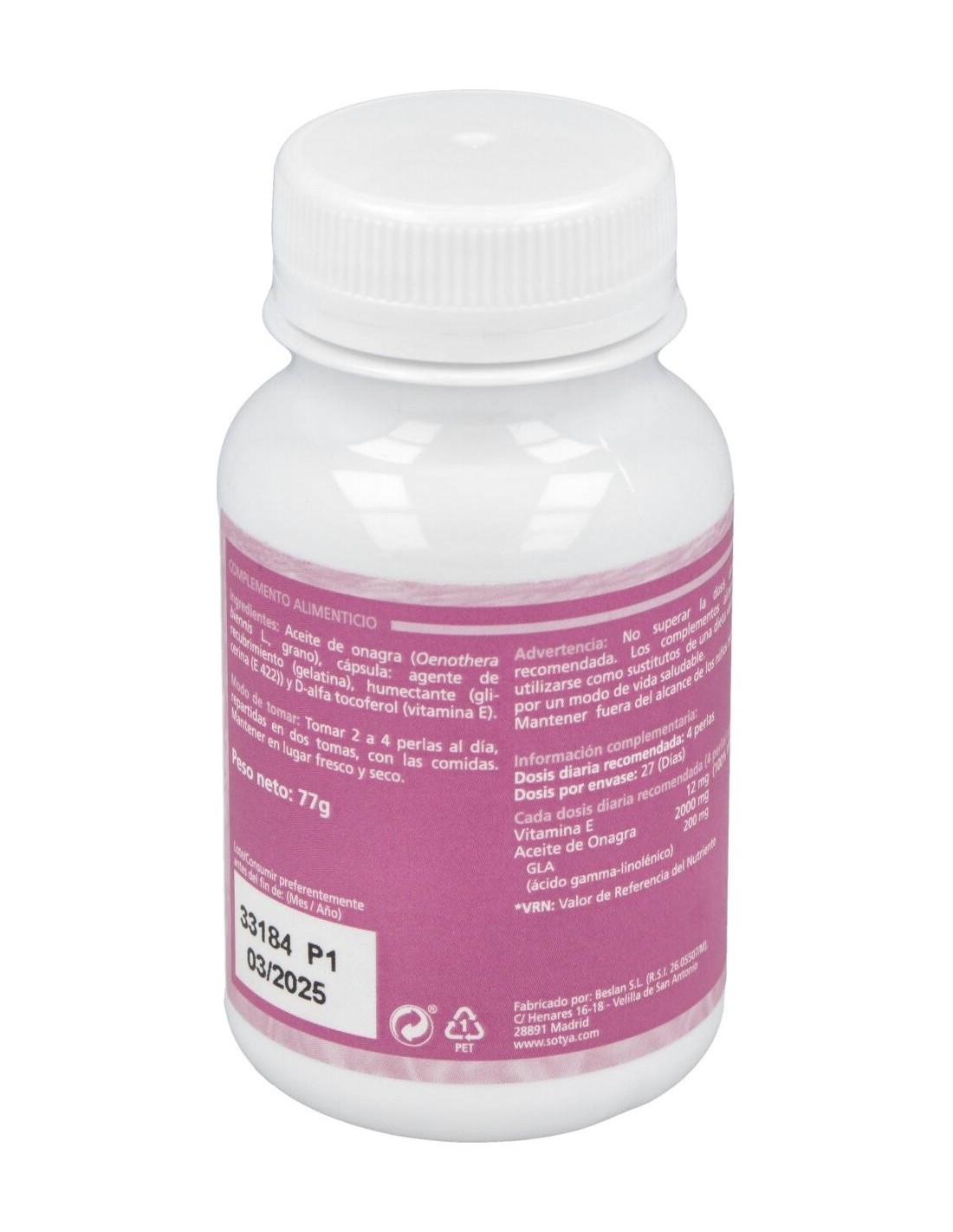 Sotya Onagra 500mg son unas perlas ricas en ácidos grasos esenciales que te ayudarán a afrontar los problemas relacionados con la menstruación. Entre los múltiples beneficios de Sotya Onagra 500mg se encuentran: