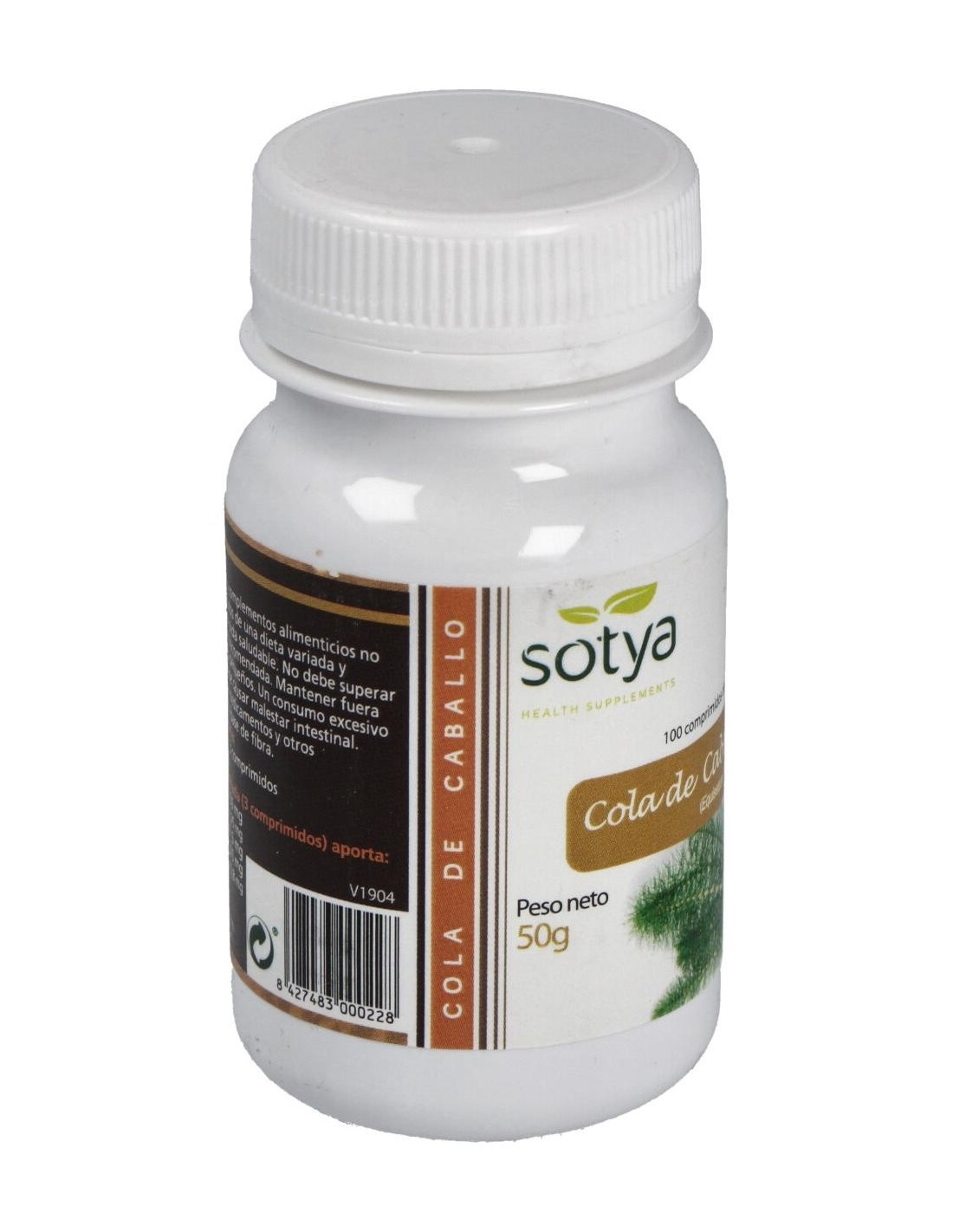 Sotya Cola de Caballo 500mg son unos comprimidos que te aportarán todos los beneficios de la cola de caballo de forma fácil y muy cómoda de consumir. La cola de caballo tiene propiedades diuréticas que te ayudarán en caso de retención de líquidos ya que aumenta la cantidad de orina, con lo que se consigue limpiar el tracto urinario y ayuda en los trasotrnos urinarios leves.
