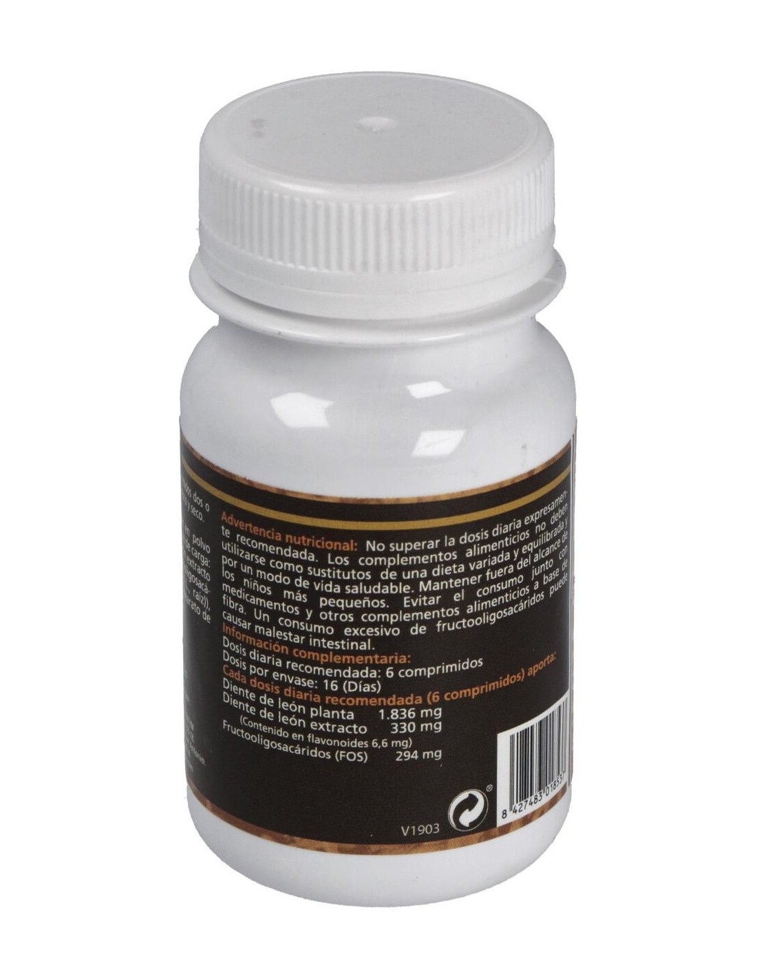 100 comprimidos de 500mg con diente de león (Taraxacum officinale, 330mg raíz en polvo), diente de león extracto (Taraxacum officinale 4:1 raíz, 55mg) y excipientes.