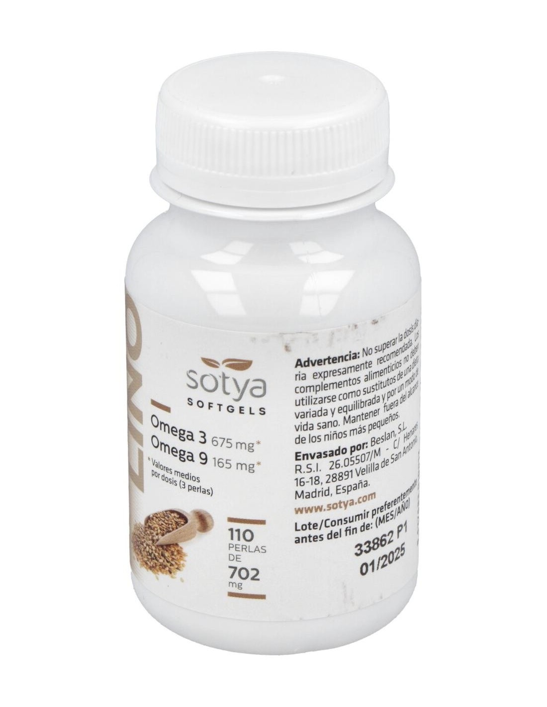 Sotya Aceite de Lino 110 perlas es un complemento alimenticio que aporta distintos nutrientes esenciales para la salud. Enriquecido a base de aceite de lino cuenta con una importante acción antiinflamatoria y posee propiedades antibacterianas y antifungicidas.