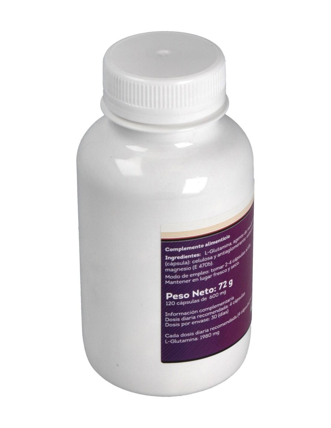Cada cápsula contiene un 100% de L-glutamina. Cápsula de gelatina.
