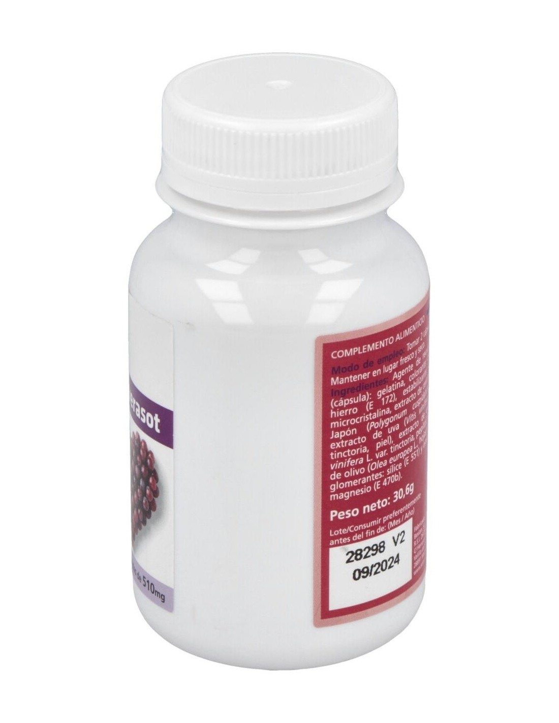 El resveratrol se obtiene de la deshidratación de la piel y semillas de uvas negras y tiene una propiedad antioxidante muy importante, aunque también actúa como antiinflamatorio, venotónico y circulatorio.
