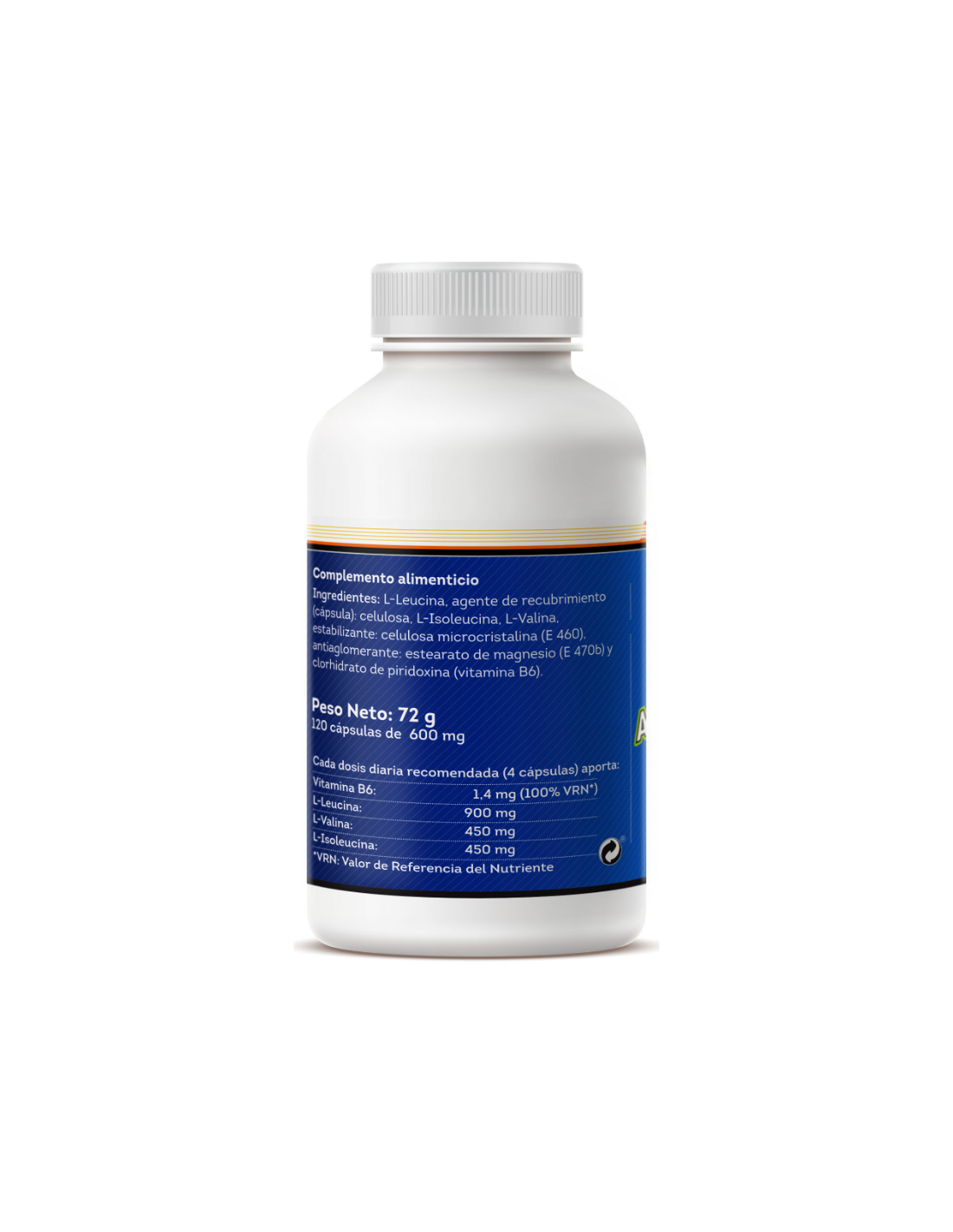 - Cada cápsula contiene 600 mg de aminoácidos ramificados, contribuyendo a la disponibilidad de nutrientes clave para el mantenimiento de la masa muscular.
