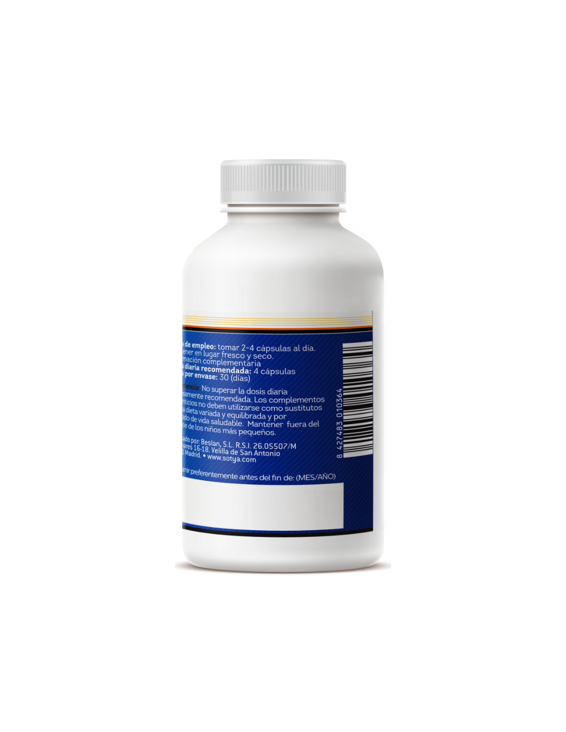 - Presentación en envase de 120 unidades, que facilita una dosificación práctica y prolongada.