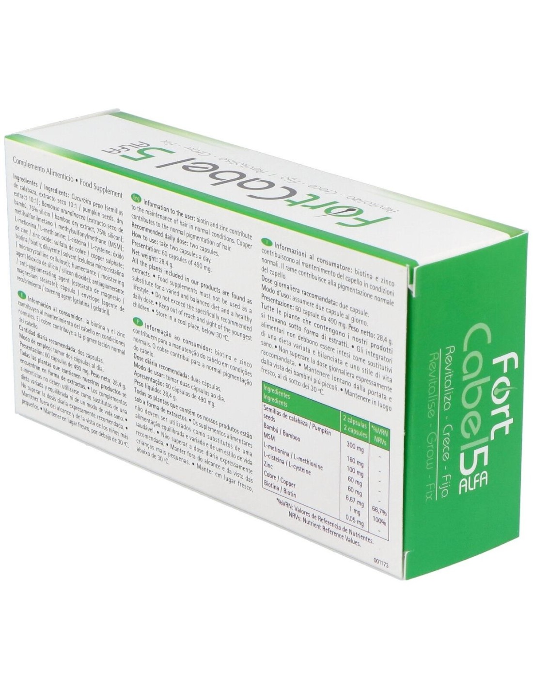 Complemento alimenticio que ayuda a revitalizar el cabello y las uñas. Crece y fija el cabello ante la caída. Contiene ingredientes naturales como semillas de calabaza, bambú, L-metionina, L-cisteína, zinc, cobre y biotina. Formato de 60 cápsulas.