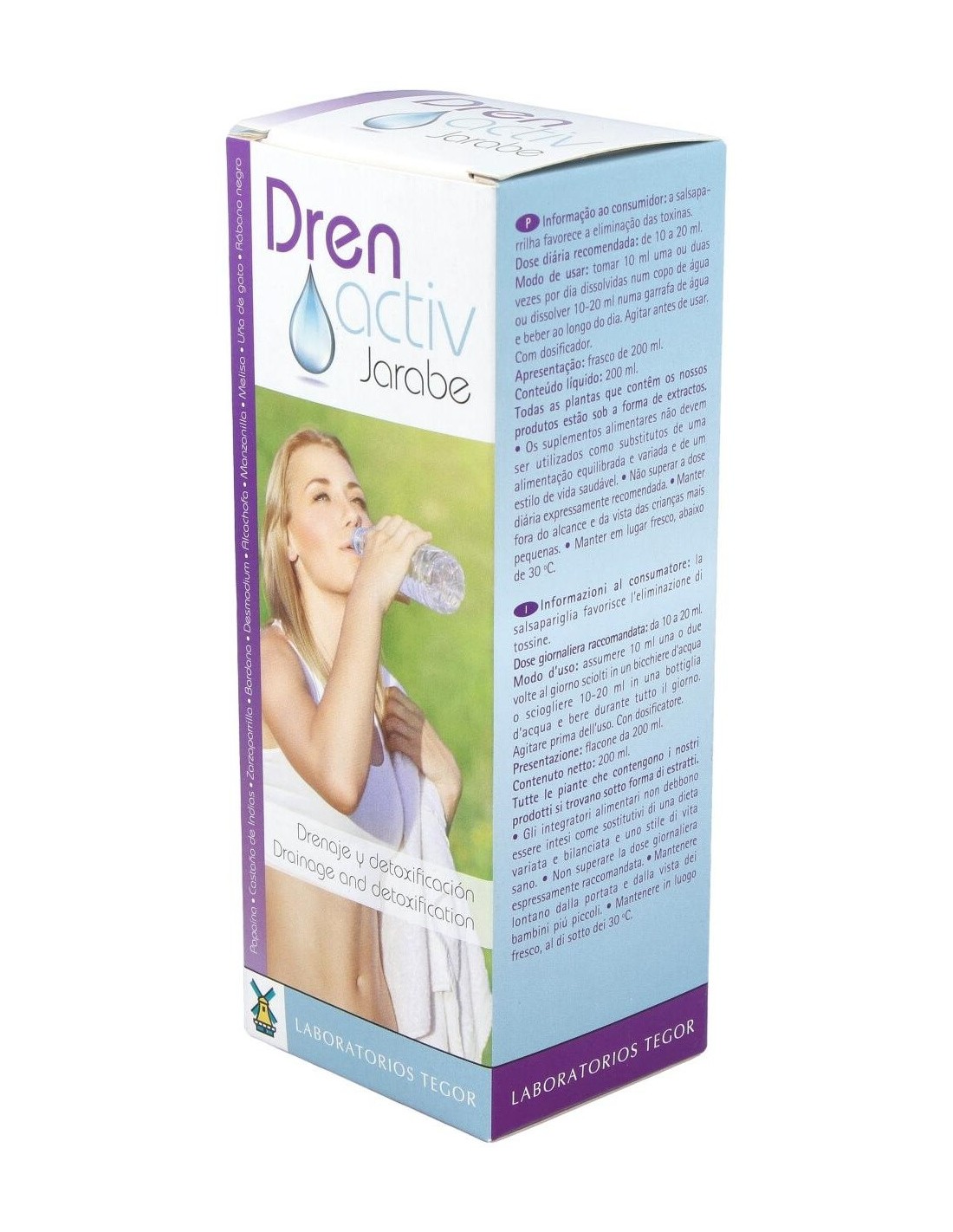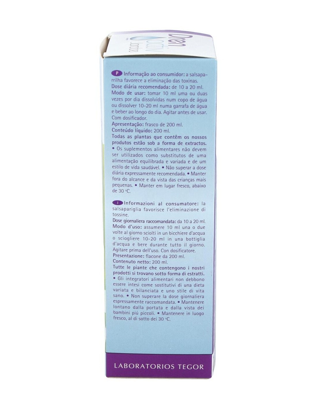 Fructosa, 50 g: papaína, 0,5 g: Aesculus hippocastanum (castaño de Indias), 10 ml: Smilax officinalis Humb., Bonpl. et Kunth (zarzaparrilla), 7,5 ml: Arctium lappa L (bardana), 7,5 ml: Desmodium adscendens DC. (desmodium), 6 ml: Cynara scolymus L. (alcachofa), 5 ml: Matricaria chamomilla L. (manzanilla), 5 ml: Melissa officinalis L. (melisa), 5 ml: Uncaria tomentosa (Willd) D.C. (uña de gato), 5 ml: Raphanus sativus (rábano negro), 4 ml: excipientes, c.s.p.