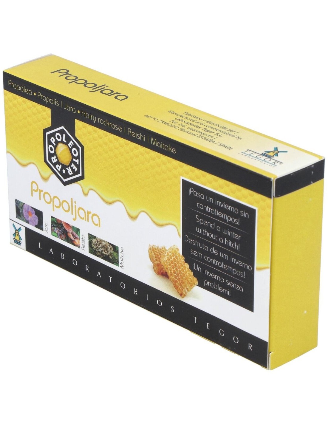 Elaborado con componentes (plantas de uso tradicional, frutas, verduras, vitaminas y minerales) que potencian las propiedades del propóleo y que ayudan a pasar un invierno sin contratiempos. Elaborado con componentes (plantas de uso tradicional, frutas, verduras, vitaminas y minerales) que potencian las propiedades del propóleo y que ayudan a pasar un invierno sin contratiempos.