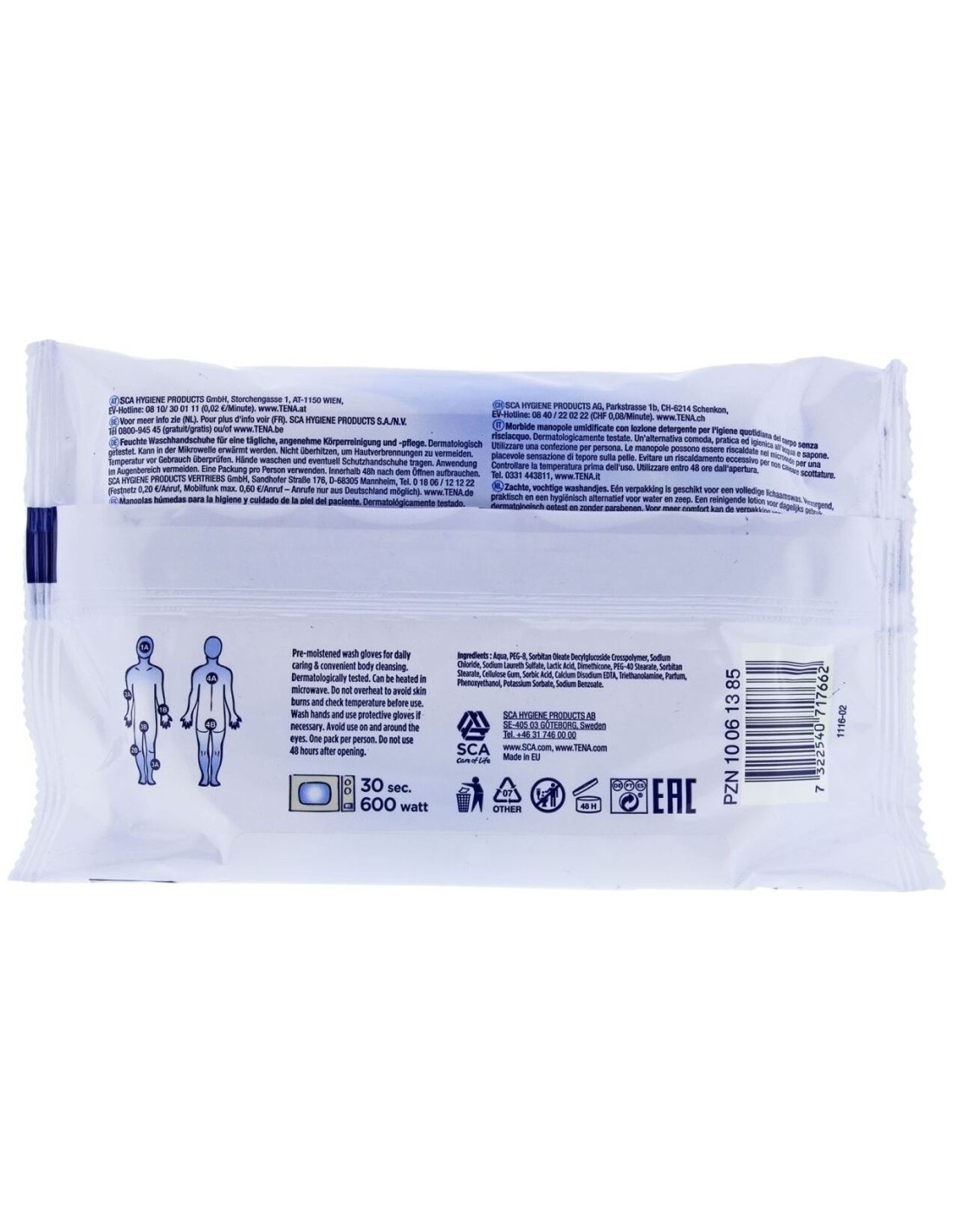 TENATENA ProSkin Manopla Húmeda, que combina la suavidad de una toallita húmeda con la comodidad de un guante, es ideal para la limpieza corporal diaria sin añadir agua ni jabón. Esta manopla de lavado desechable tiene un olor fresco y suave. Está humedecida con una fórmula sin aclarado que limpia suavemente la piel frágil de las personas mayores. La cómoda manopla proporciona un buen agarre y cubre toda la mano para aplicar una buena higiene. Para mayor confort, la manopla húmeda puede calentarse en el microondas antes de utilizarla.