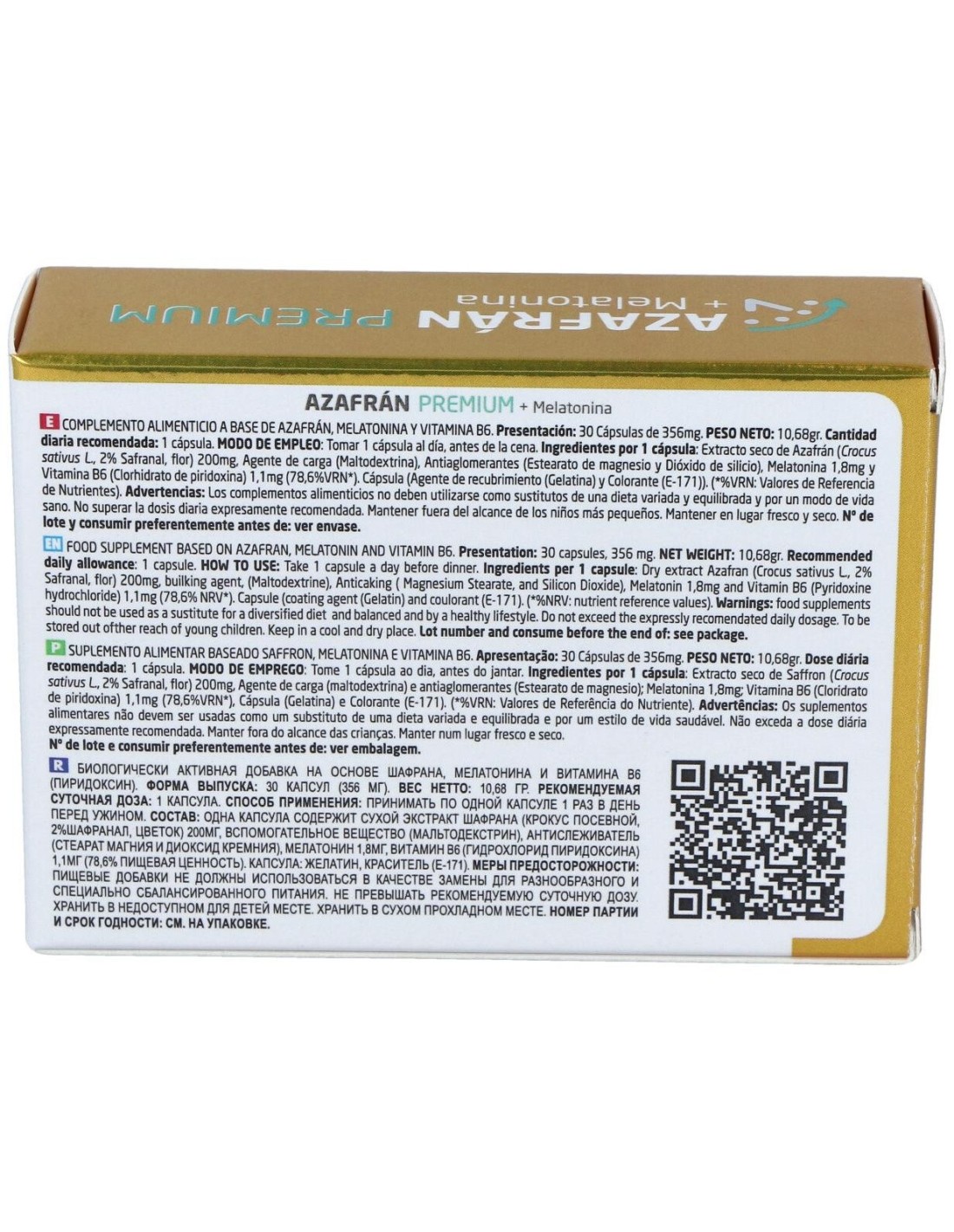 Complemento alimenticio elaborado con extracto de azafrán 100% orgánico, adecuado para reducir el tiempo de conciliar el descanso. Enriquecido con melatonina, un aminoácido natural que es esencial para la producción y mantenimiento de las proteínas y neurotransmisores del cuerpo. Ayuda a dormir satisfactoriamente por las noches y a mantener la regularidad del ciclo, sueño y vigilia. Colabora en la relajación física y mental, sin causar dependencia.