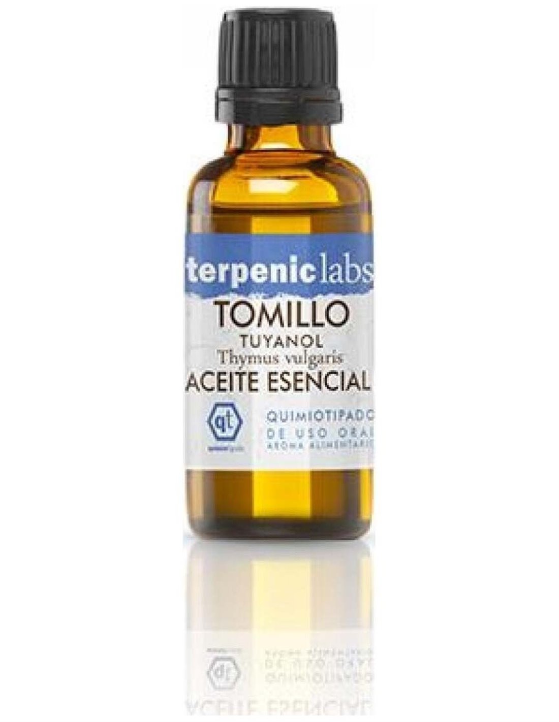 Aceite esencial de uso oral/tópico. Composición 100% puro, íntegro, natural y quimiotipado. Extracto obtenido 100% de Thymus vulgaris. El producto facilita distintas propiedades: hepatoestimulante, antibacteriano, inmunoestimulante estimulante circulatorio y antifúngico. Indicado para casos de: bronquitis, sinusitis, otitis, gripe, gingivitis, aftas, herpes, cistitis, uretritis, micosis, insuficiencia hepática, tendinitis, astenia.