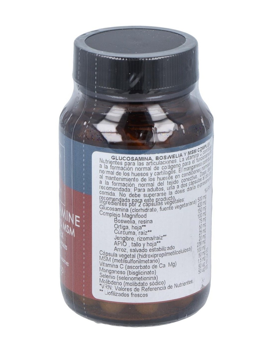 Complemento alimenticio a base de MSM, vitamina C, minerales y plantas del Complejo Magnifood. Contribuye a la formación normal de colágeno para el funcionamiento normal de los huesos y cartílagos. Apto para veganos y vegetarianos.