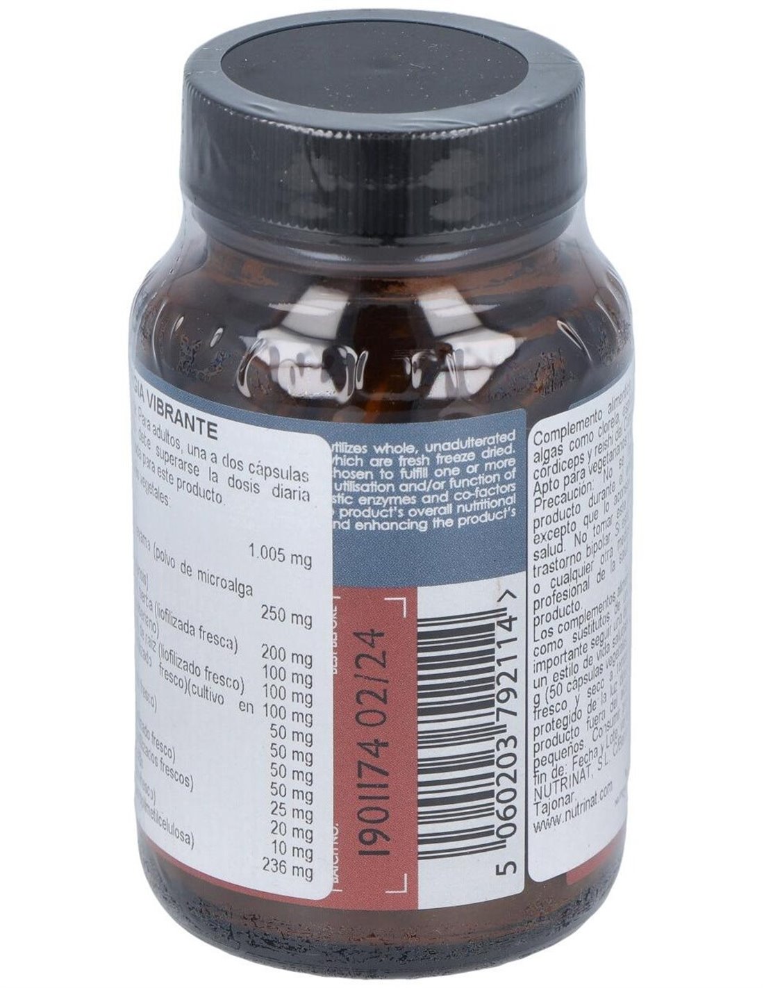 Cápsulas con propiedades calmantes para el sistema nervioso que mejora el rendimiento físico y mental y retrasa la aparición de síntomas relacionados con la fatiga y el cansancio. Contiene extractos vegetales, chlorella, espirulina, cebada verde, eleuterococo, ginseng, jengibre y cayena que proporcionan vitaminas, minerales y ácidos grasos de fácil digestión.