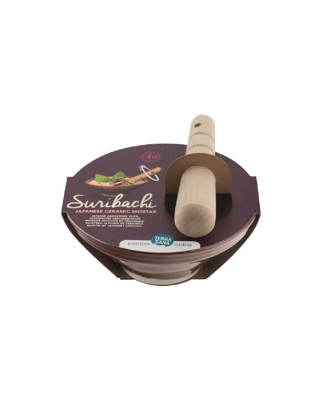 Pack 1 Uds. Suribachi & Surikogi (18 Cm) Mortero Japonés de Cerámica con Mano de Madera de Terrasana