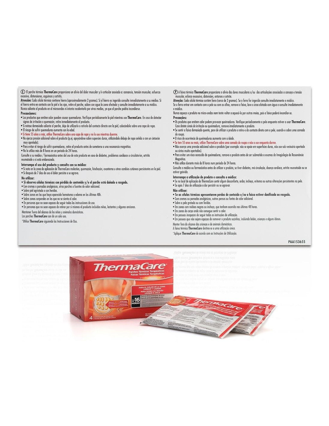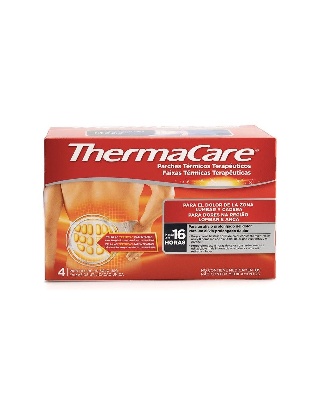 THERMACAREThermaCare® lumbar y cadera es adecuado para el tratamiento de las molestias y los dolores musculares y articulares, así como para la tensión muscular en la región lumbar. Los parches, cómodos de utilizar y con 16 células de calor patentadas, son ajustables en tamaño gracias a la banda de material elástico y cierre de velcro. Proporciona alivio prolongaodo durante 16 horas. Esto es, 8 horas mientras se lleva puesto y 8 horas adicionales después de quitárselo.