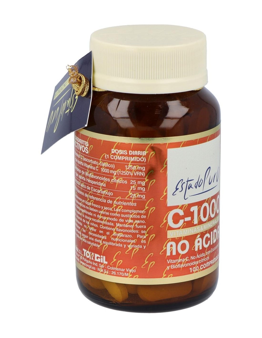 Vitamina C-1000 No Acida 100Comp. Estado Puro de Tongil