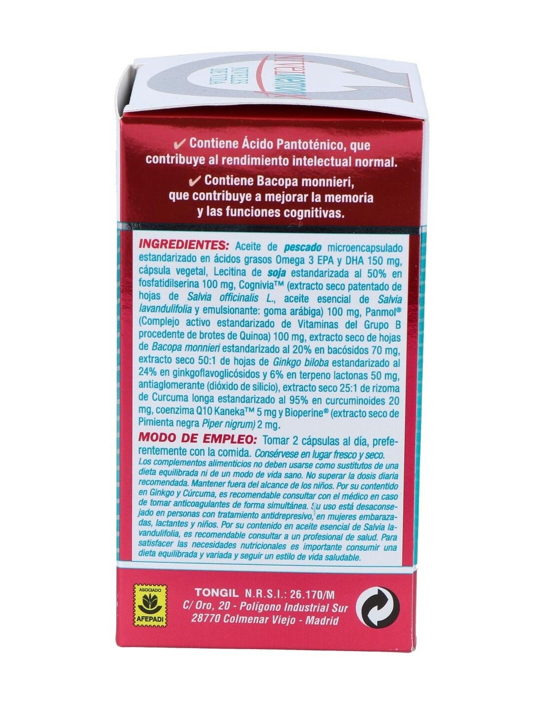 Aporta nutrientes para el rendimiento intelectual normal como el ginkgo que contribuye al normal mantenimiento de las funciones cognitivas. La Bacopa apoya la concentración y la memoria.