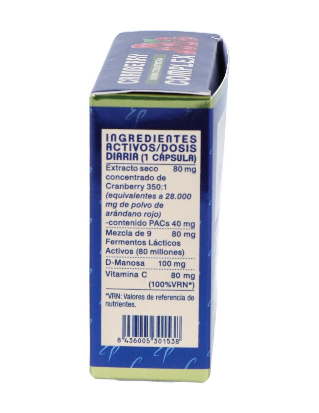 Extracto seco concentrado de Cranberry 350:1 (equivalentes a 28.000 mg de polvo de arándano rojo)..................................80 mg