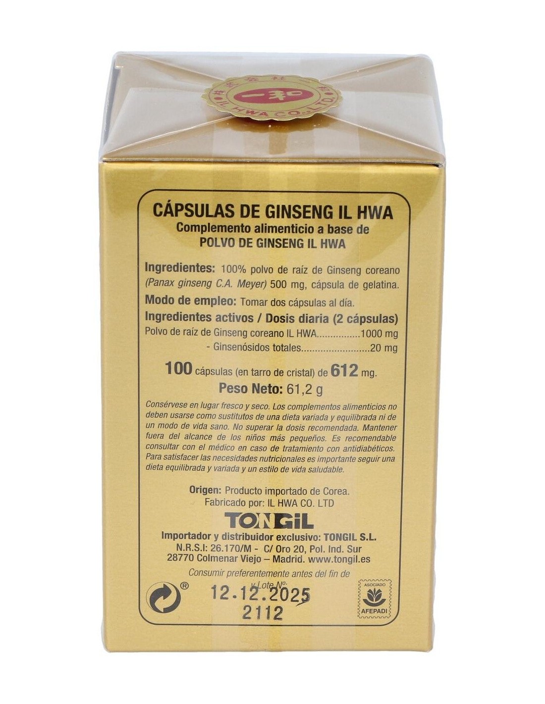 Ginseng Il Hwa 100Cap.Tarro de Tongil