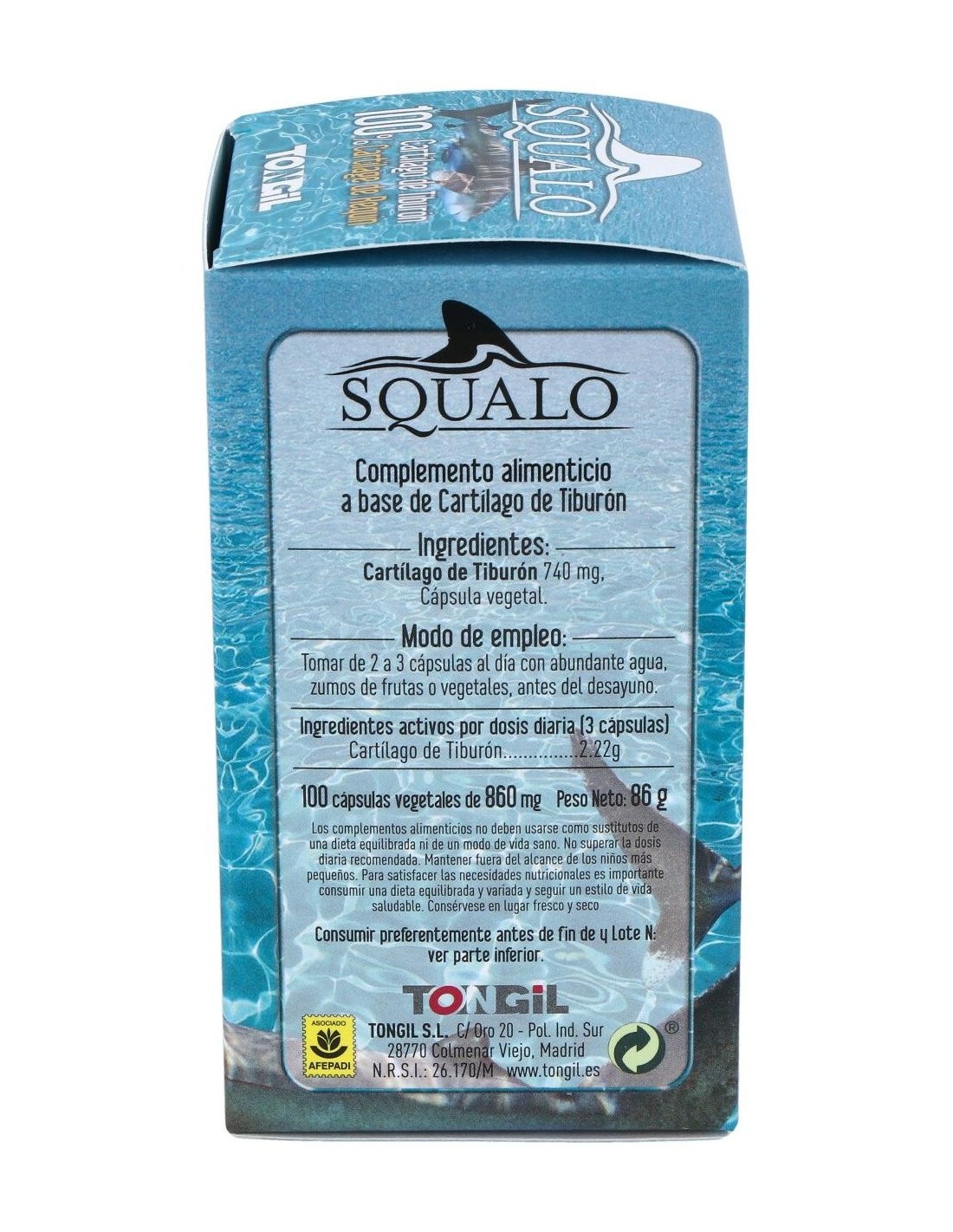 Squalo Cartilago De Tiburon Puro 750Mg. 100Cap. de Tongil