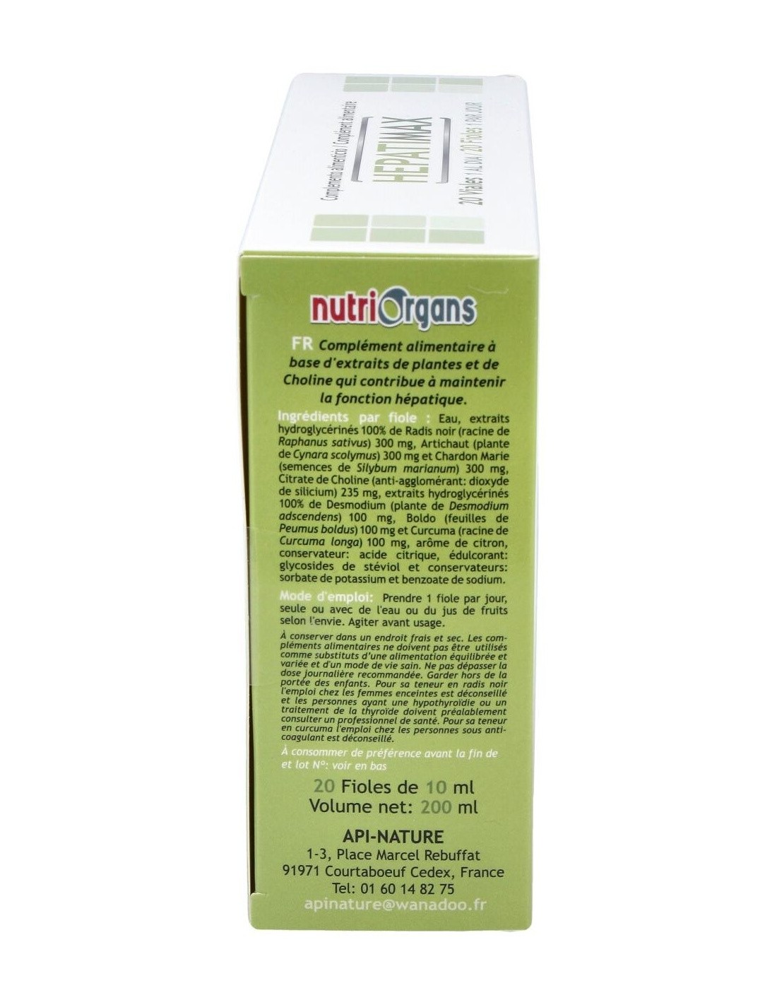 Por 1 vial: Extractos hidroglicerinados al (100 %): (Raíz de Rábano negro (Raphanus sativus) (300 mg), Planta de Alcachofa (Cynara scolimus) (300 mg), Semilla de Cardo mariano (Silybum marianum) (300 mg), Planta de Desmodio (Desmodium adscendens) (100 mg), Hojas de Boldo (Peumus boldus) (100 mg), Raíz de Cúrcuma (Curcuma longa) (100 mg)), Citrato de colina (235 mg).