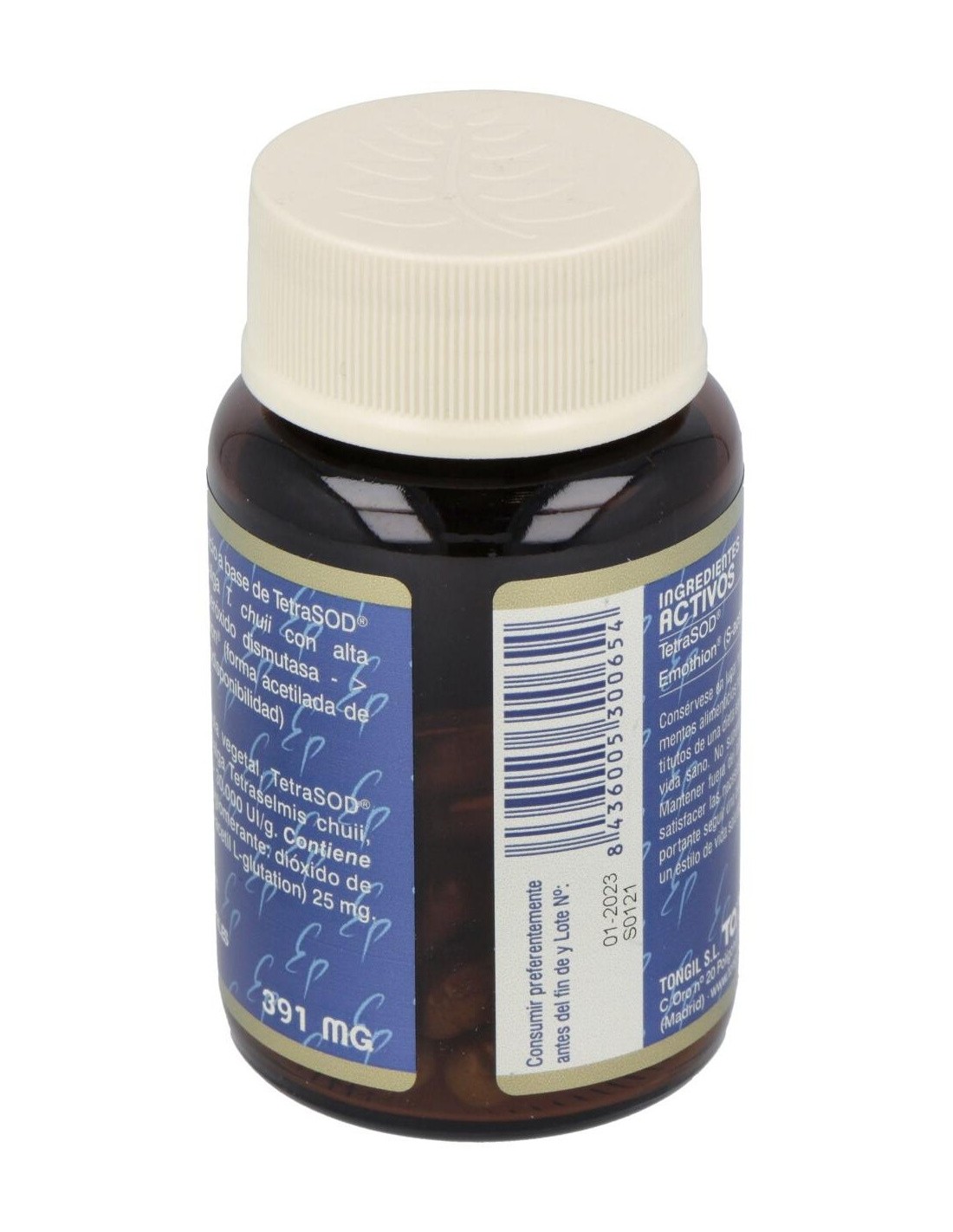Complemento alimenticio a base de TetraSOD® (liofilizado de microalga T. chuii con alta actividad SOD superóxido dismutasa-) y Emothion® (forma acetilada de Glutation de alta biodisponibilidad).