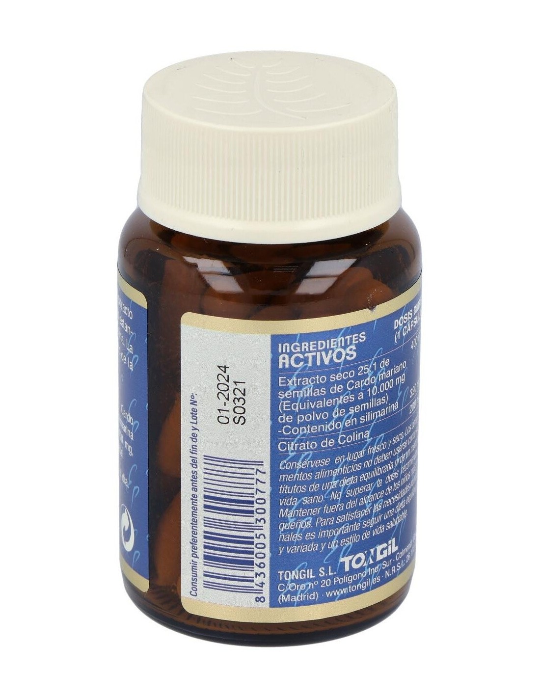 Por 1 cápsula: Extracto seco 25:1 de semillas de Cardo mariano (Equivalentes a 10.000 mg de polvo de semillas) (400 mg): Contenido en silimarina (320 mg), Citrato de Colina (200 mg).