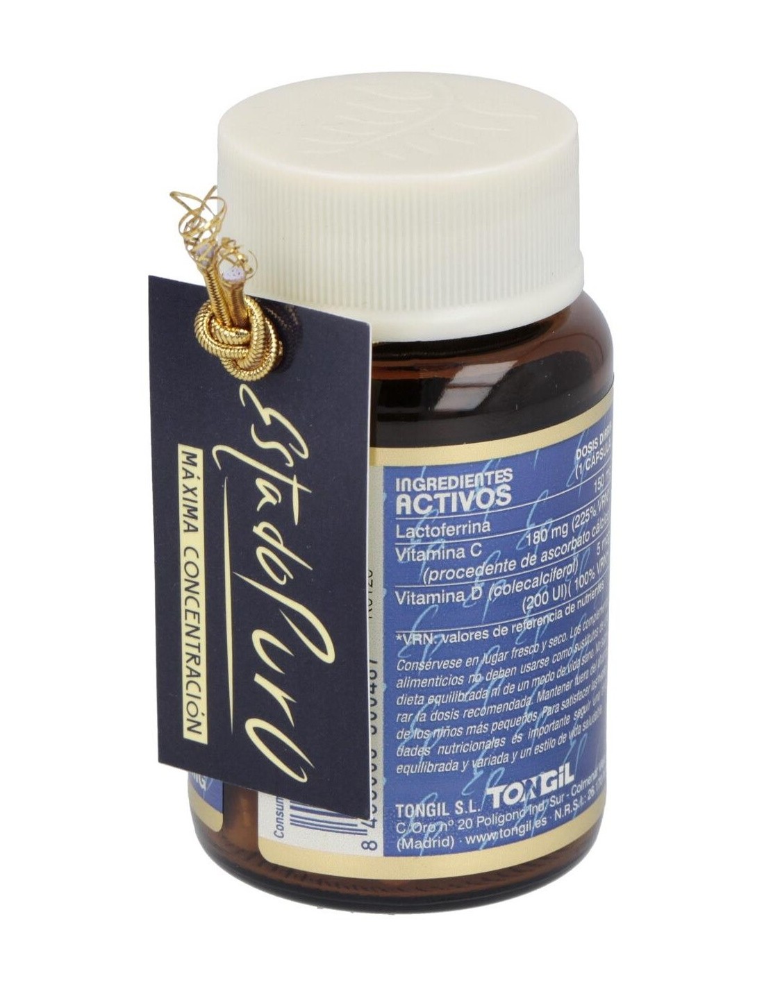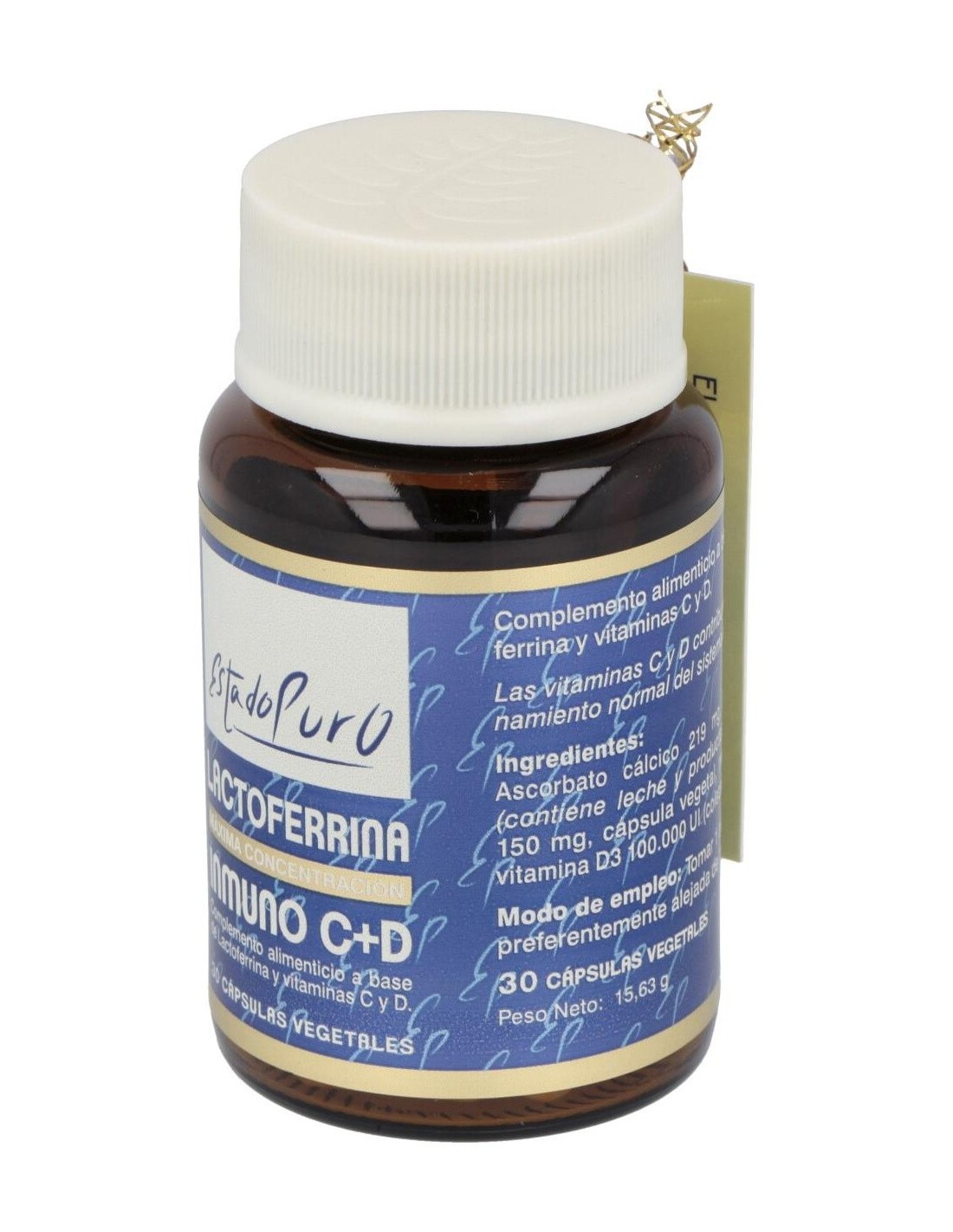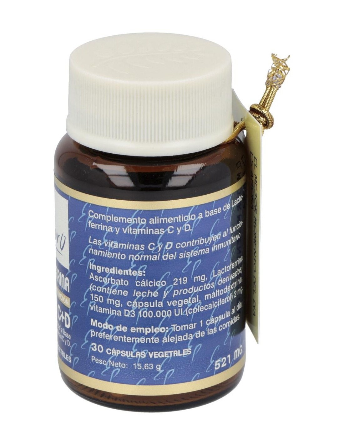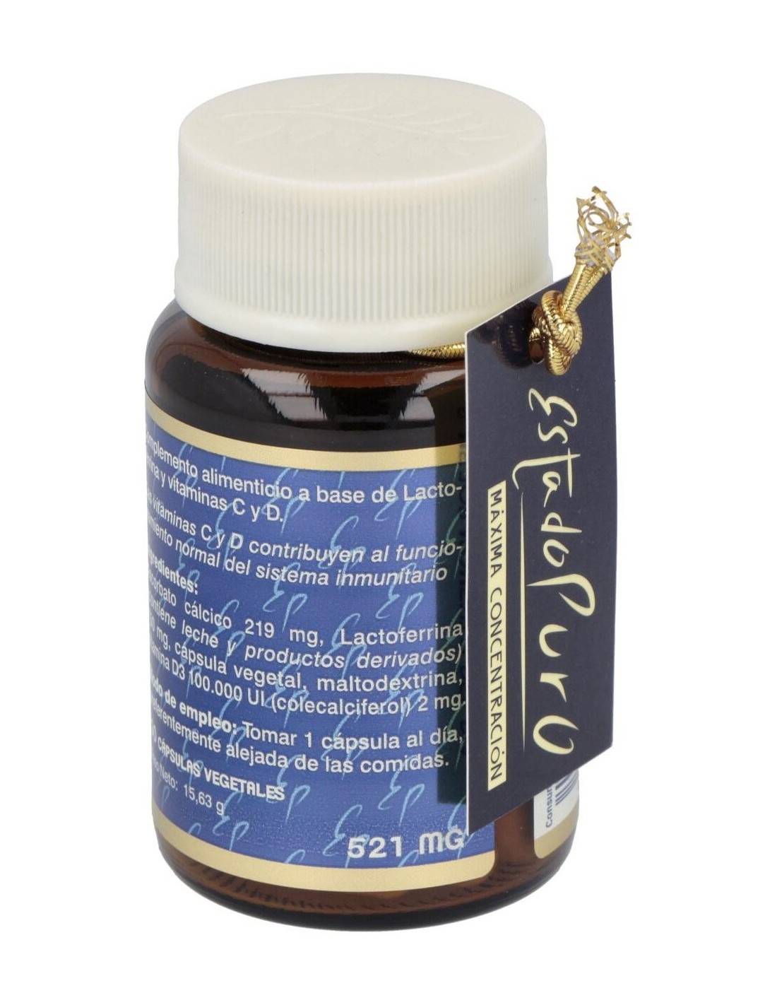 Ascorbato cálcico 219 mg, Lactoferrina (contiene leche y productos derivados) 150 mg, cápsula vegetal, maltodextrina, vitamina D3 100.000 UI (colecalciferol) 2 mg.