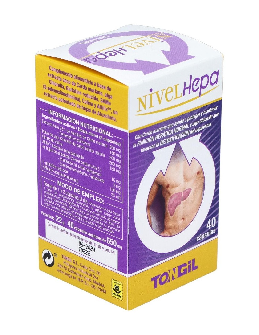 Extracto seco 25:1 de semillas de Cardo mariano (Silybum marianum) estandarizado al 80% en silimarina 100 mg, polvo de alga Chlorella de pared celular abierta (Chlorella vulgaris) (Contiene sulfitos) 100 mg, citrato de colina 100 mg, cápsula vegetal, AltilixTM (extracto seco patentado de hojas de alcachofa (Cynara cardunculus L.) estandarizado al 10% en ácido clorogénico y al 2% en luteolin-7-glucósido, maltodextrina) 75 mg, L-glutation 50 mg y SAMe (S-adenosilmetionina) 12,5 mg (procedente de S-adenosilmetionina disulfato p-toluensulfonato, estabilizante: cloruro de calcio, corrector de acidez: óxido de calcio)