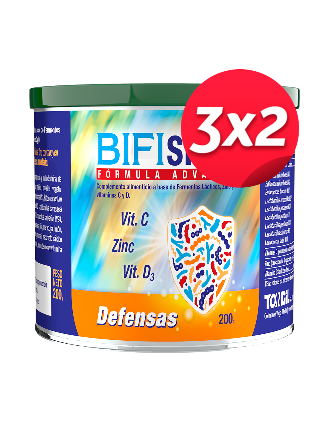 9 cepas de probióticos estabilizados a través de una tecnología que garantiza la supervivencia a través del tracto digestivo y su activación en el intestino. Fórmula reforzada con las vitaminas C y D y el mineral Zinc que contribuyen al normal funcionamiento del sistema inmunitario.