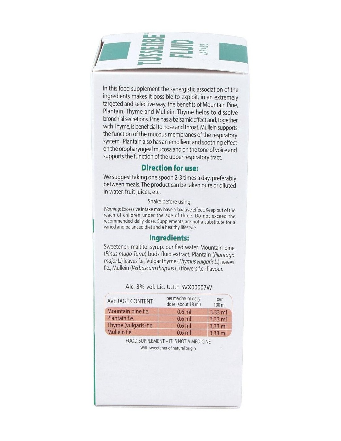 Gordolobo,flor, extr. Fluido/ Llantén, parte aérea, extr. Fluido/ Pino mugo, yemas, extr. Fluido/ Tomillo hojas, extr. Fluido.