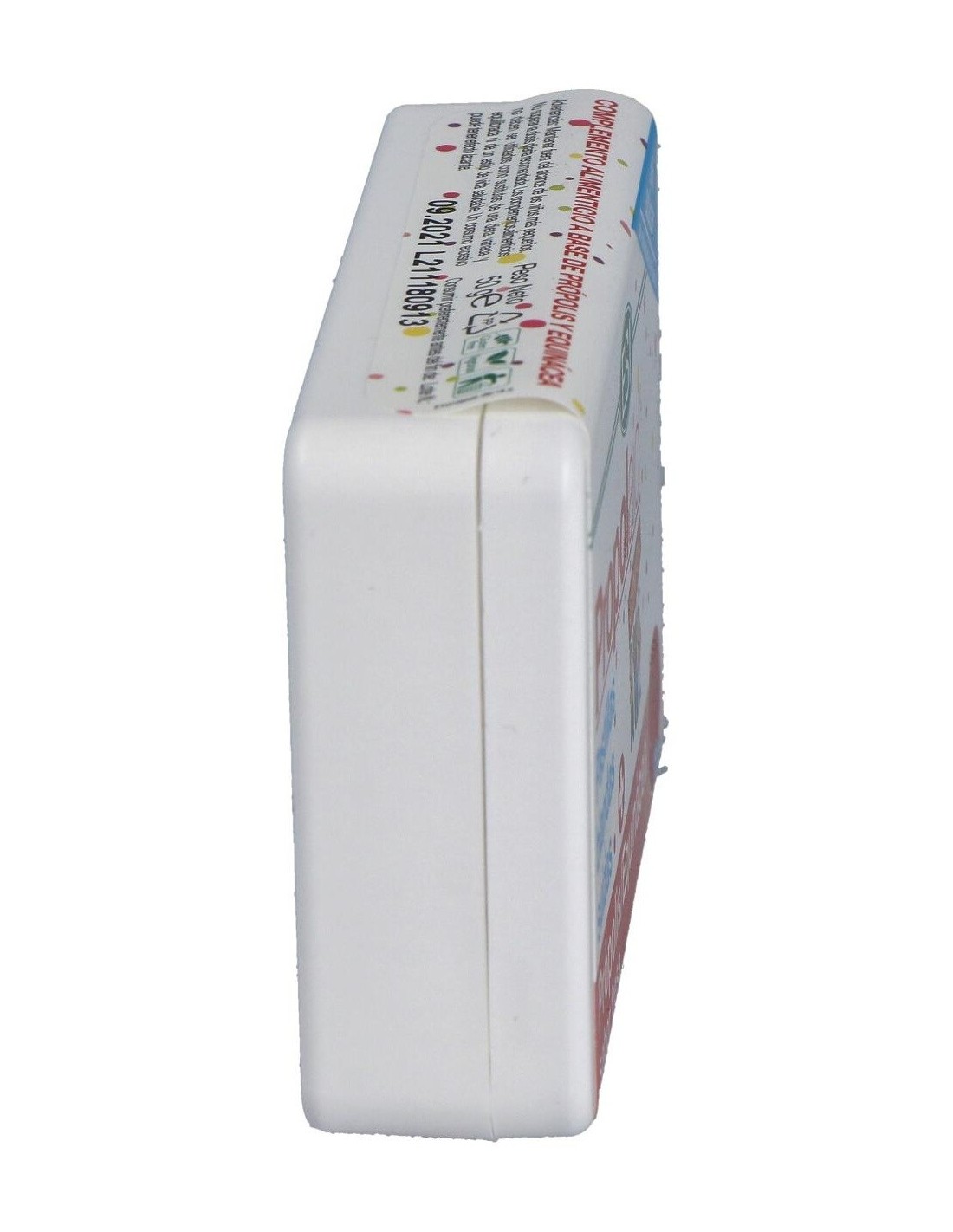 Espesante: goma arábiga: edulcorante: sorbitol, jarabe de maltitol y glucósidos de steviol: agua depurada: acidulante: ácido cítrico: aroma natural: agente de revestimiento: aceite de coco, aceite de canola y cera carnauba.