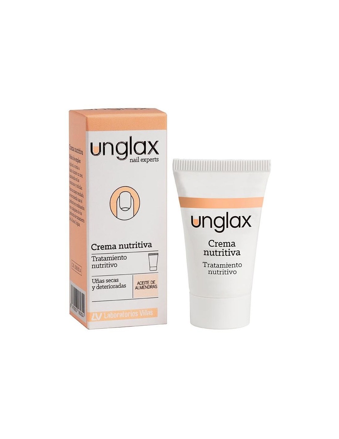 Unglax crema nutritiva es una crema para uñas, nutritiva, hidratante y que suaviza la superficie de tus uñas. Esta crema de manos contiene aceite de almendras dulces con acción emoliente, reestructurarte e hidratante. Además de suavizar y ayudar a alisar la superficie de las uñas mates y secas, esta crema penetra hasta las capas internas y más profundas de las uñas para nutrirlas y flexibilizarlas. Y no sólo eso, sino que su uso continuado ayuda a que tus uñas sean más resistentes.