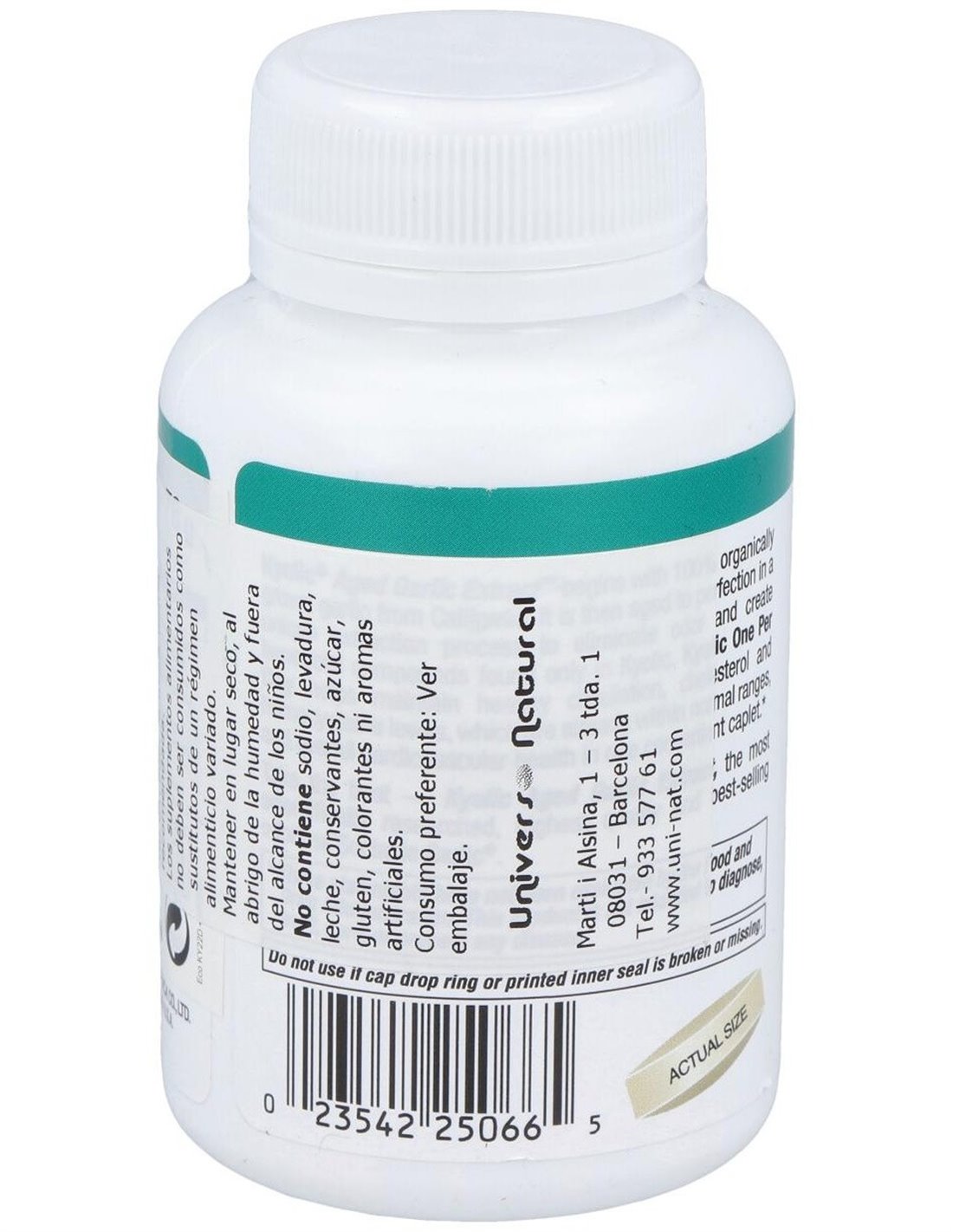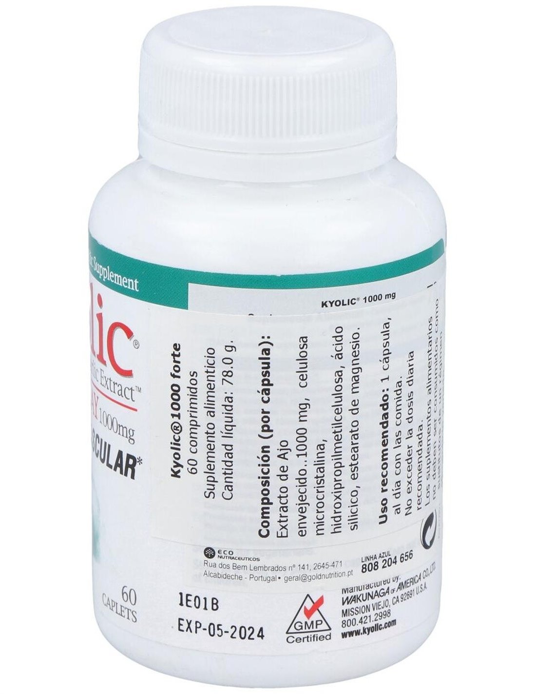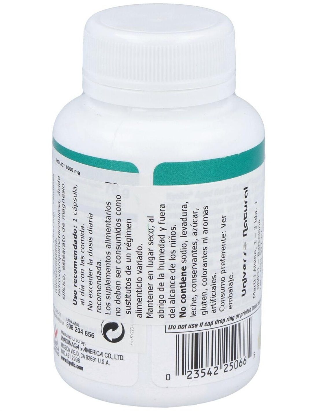 Extracto de ajo envejecido Kyolic®1000 mg. Otros: Celulosa microcristalina, dióxido de silicio, estearato de magnesio.