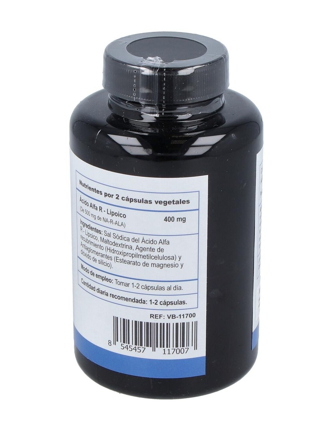 Sal sódica de Ácido Alfa R-Lipoico, maltodextrina, hidroxipropilmetilcelulosa, estearato de magnesio, dióxido de silicio.