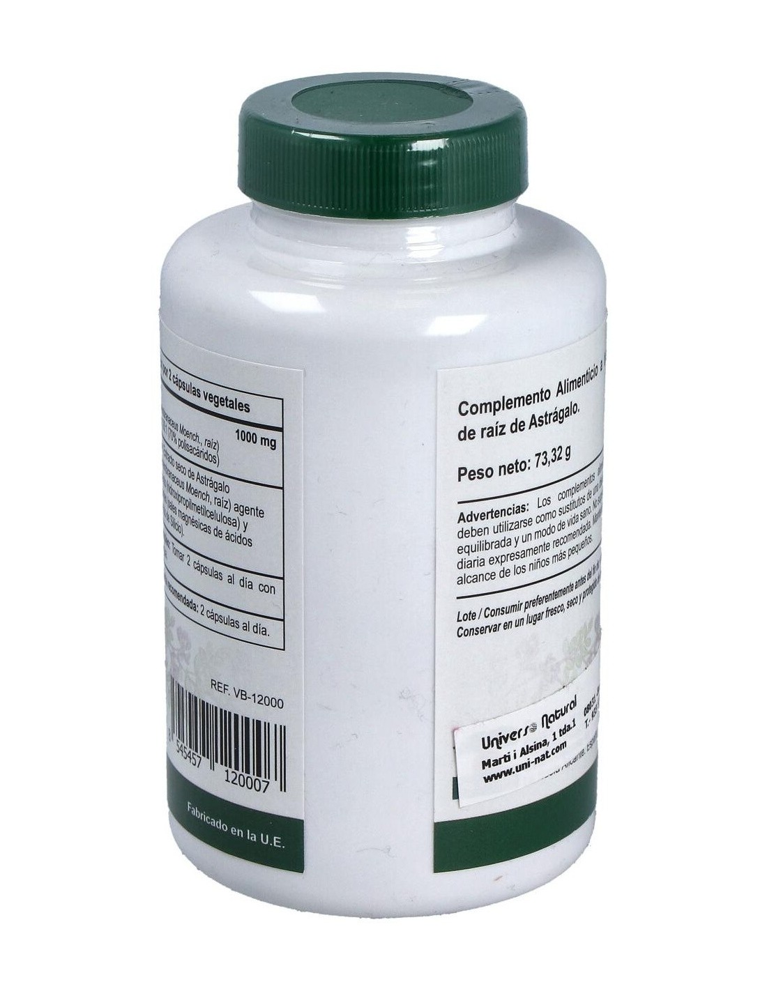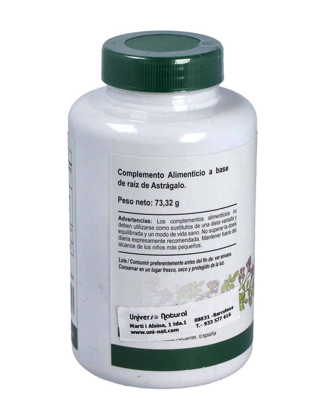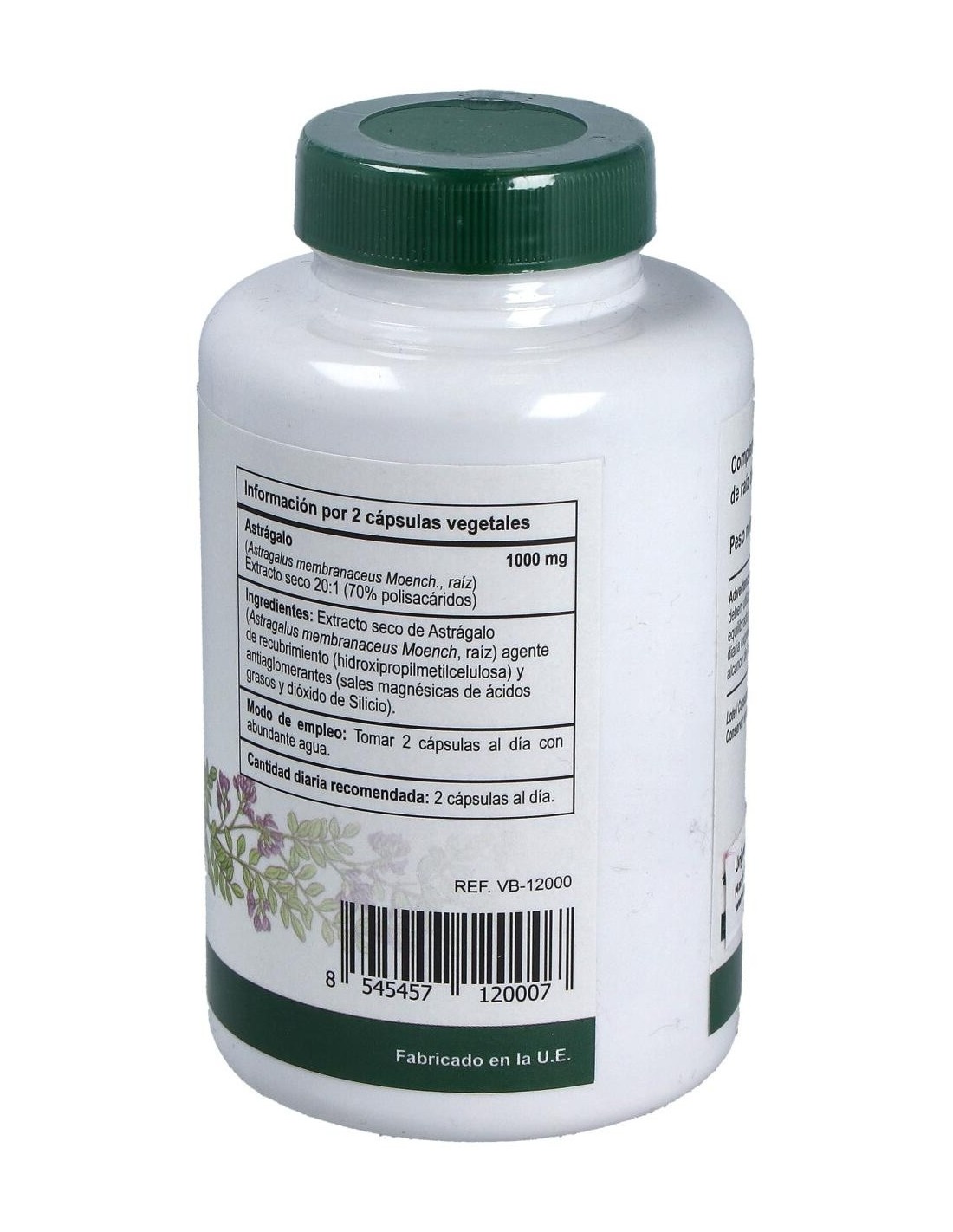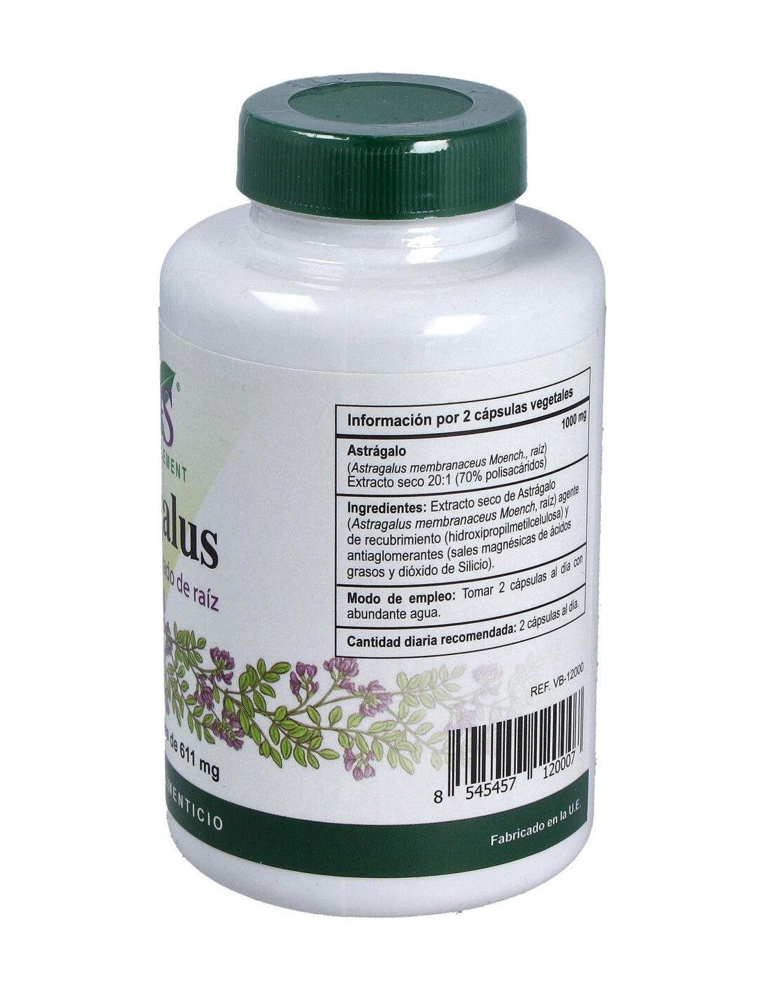 Extracto seco de Astrágalo (Astragalus membranaceus Moench, raíz) agente de recubrimiento (hidroxipropilmetilcelulosa) y antiaglomerantes (sales magnésicas de ácidos grasos y dióxido de Silicio).