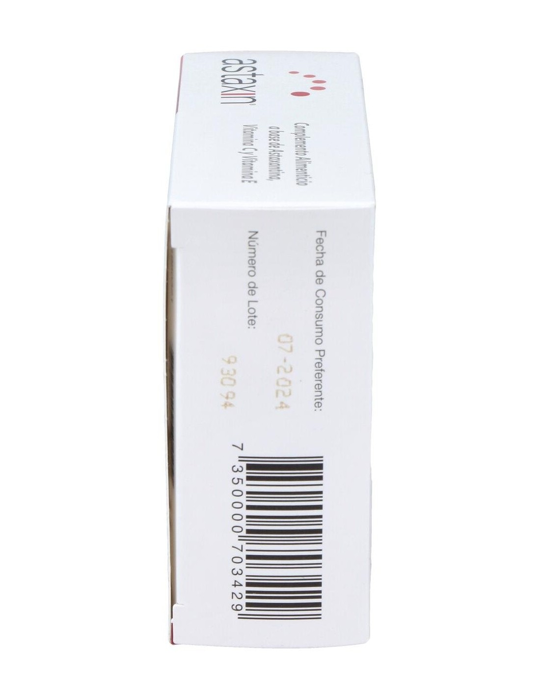 Complemento alimenticio a base de astaxantina que es un gran antioxidante que se genera por la microalga haematoccocus pluvialis, que ayuda a mantener las células corporales un correcto estado ya que fortalece sus membranas y contribuye a prevenir su prematura degradación.
