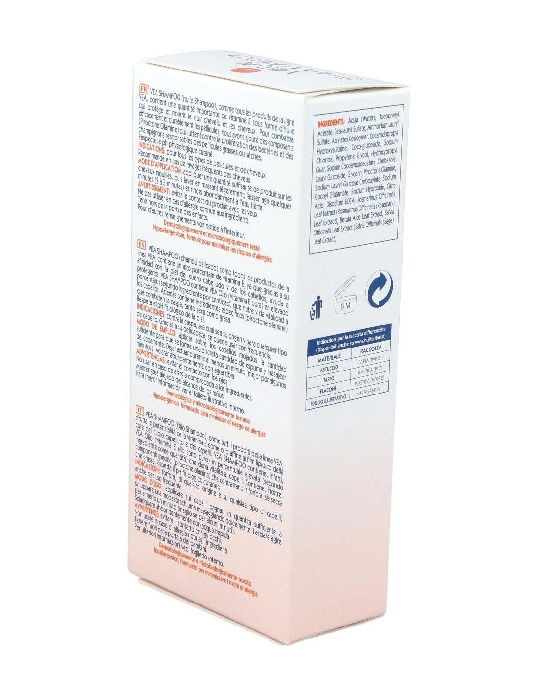 INCI: Aqua/Water, Tocopheryl Acetate, Tea-lauryl sulfate, Ammonium lauryl sulfate, Acrylates copolymer, Cocoamido propyl hydroxy sultaine, Cocoglucoside, Sodium chloride, Hydroxypropyl guar, Sodium cocoyl hydrolyzed wheat protein, Propylene glycol, Piroctone olamine, Zinc pyrithione, Sodium hydroxide, Citric acid, Disodium EDTA, Sulfur, Betula alba extract, Rosmarinus officinalis extract, Salvia officinalis extract