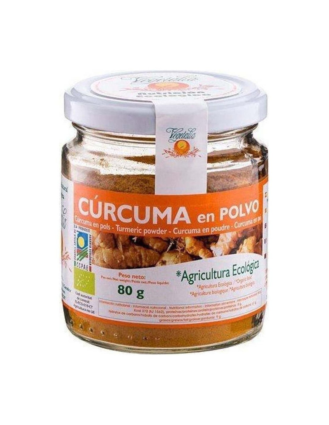 La Curcuma Polvo 80Gr.Bio de Vegetalia es un condimento natural para consumidores conscientes de su alimentación, que aporta sabor y color a tus recetas gracias a su cultivo ecológico certificado.