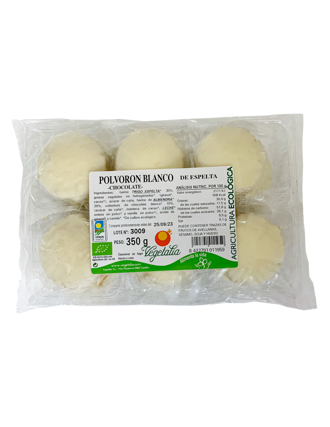 Polvorones Espelta Chocolate Blanco 350 Gr Bio de Vegetalia