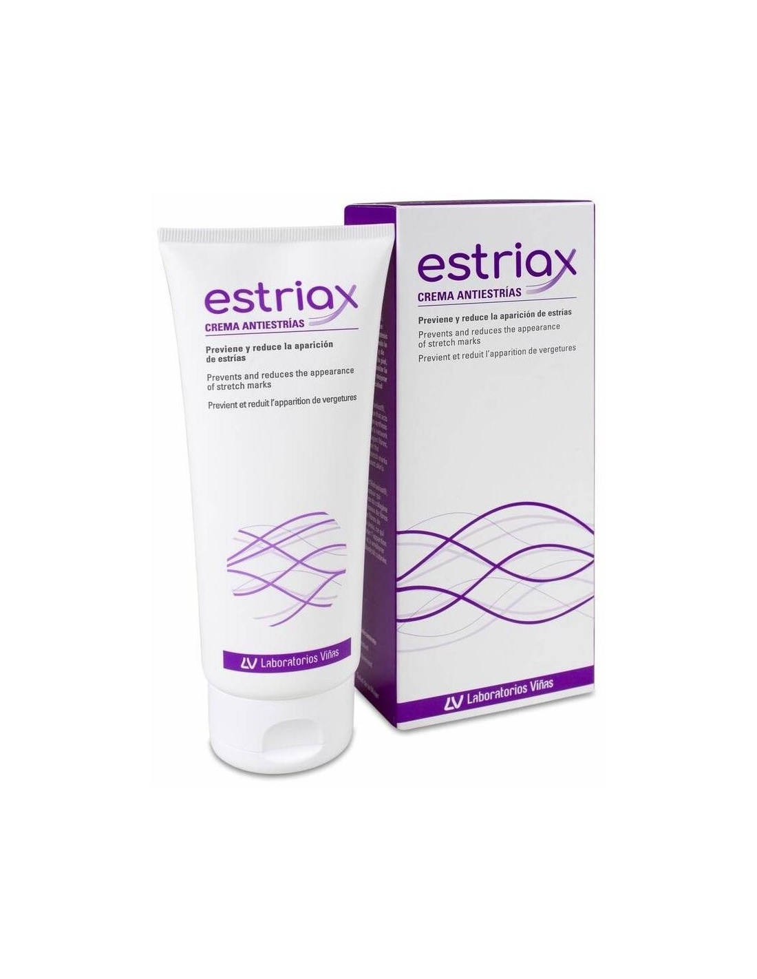VIÑASEstriax es una crema que previene la aparición de estrías y mejora la apariencia y visibilidad de las ya existentes. La elastina y el colágeno son proteínas estructurales del tejido conectivo, que aportan soporte y flexibilidad a la piel, y son las responsables de proporcionar propiedades elásticas a los tejidos y permitir su correcta distensión. Estriax, gracias a su fórmula innovadora con Hidraelast®, potencia la elasticidad, flexibilidad y tonicidad de la piel; preservando la correcta estructura de la red de fibras elásticas y de colágeno, y aportando emoliencia e hidratación al manto hidrolipídico.\ Estriax es una crema de muy alta aceptabilidad cosmeto-galénica; de extensibilidad fácil y agradable, adecuada para la aplicación de masaje diario, de rápida absorción y perfume suave.