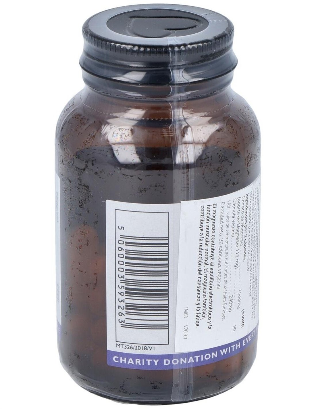 El magnesio contribuye al equilibrio electrolítico y la función muscular normal. El magnesio también contribuye a la reducción del cansancio y la fatiga. Producto vegano.