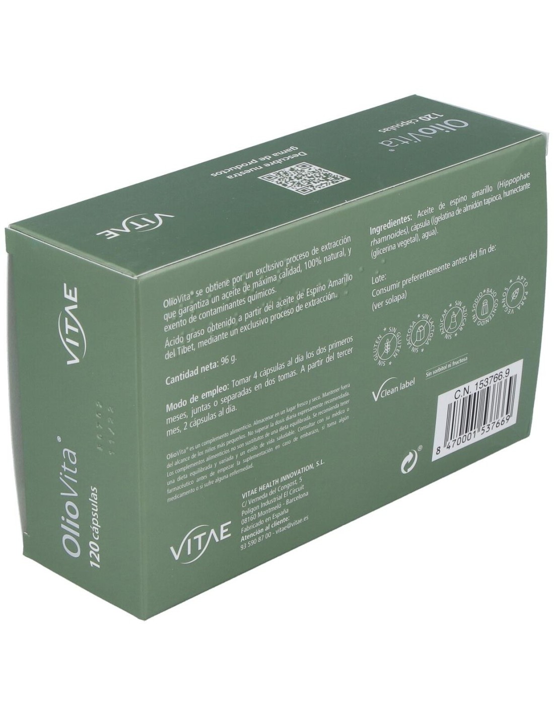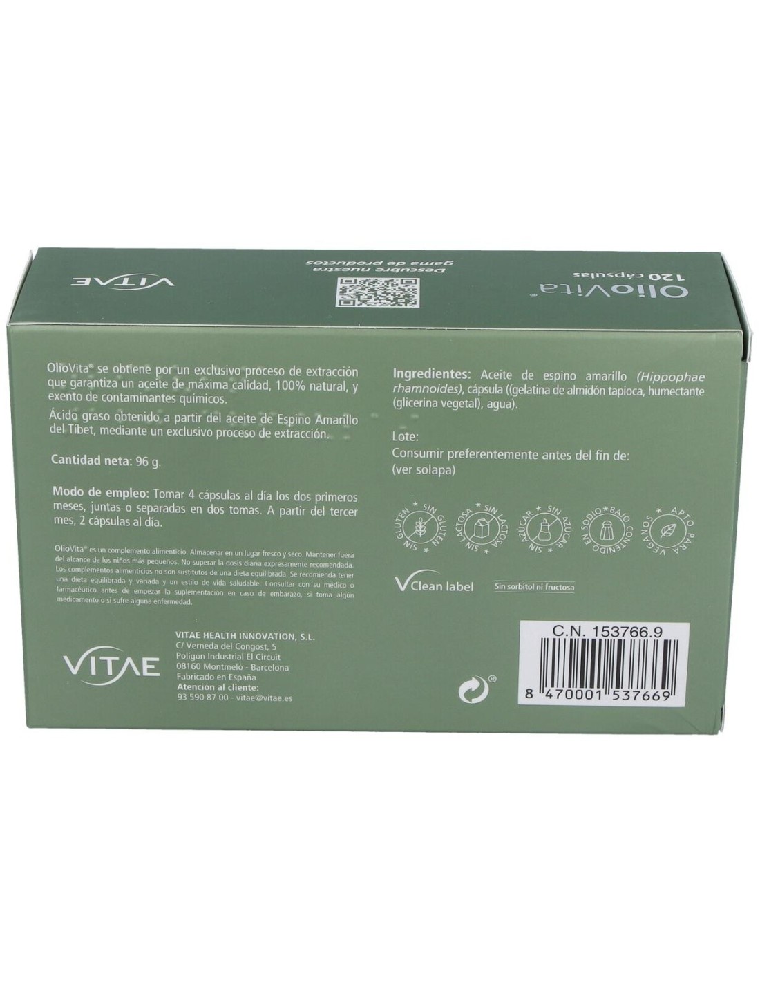 VITAEComplemento alimenticio a base de aceite de espino amarillo, un ácido graso muy rico en Omega 7 que contribuye a mantener un normal estado de salud de la piel y las mucosas. Complemento alimenticio a base de aceite de espino amarillo, un ácido graso muy rico en Omega 7 que contribuye a mantener un normal estado de salud de la piel y las mucosas.