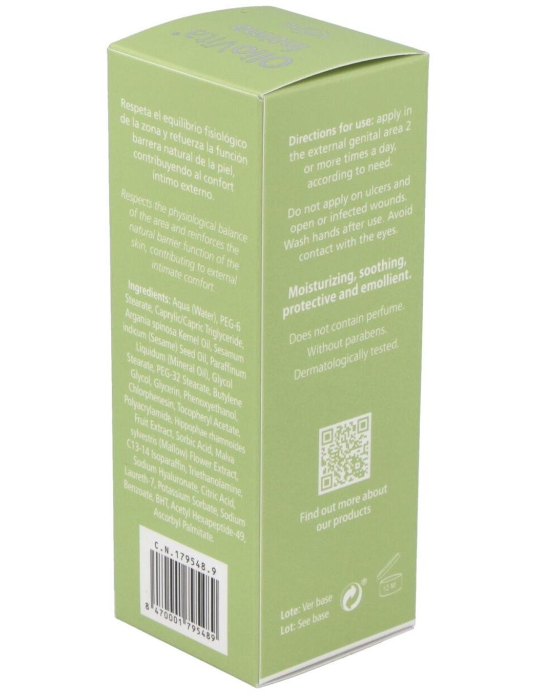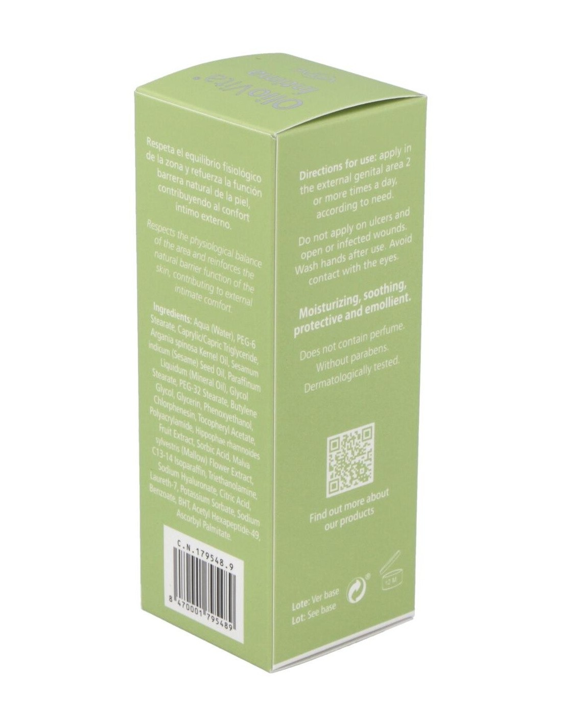 Actúa como un hidratante íntimo ayudando a aliviar la sequedad vaginal, respetando el equilibrio fisiológico de la zona y reforzando la función de barrera natural de la piel. Es rica en extracto de espino amarillo que ayuda a rehidratar y regenerar la piel y las mucosas. Además, mejora el estado de hidratación de la mucosa vaginal, humedece la zona, y reduce la sensación de dolor, quemazón y picor.
