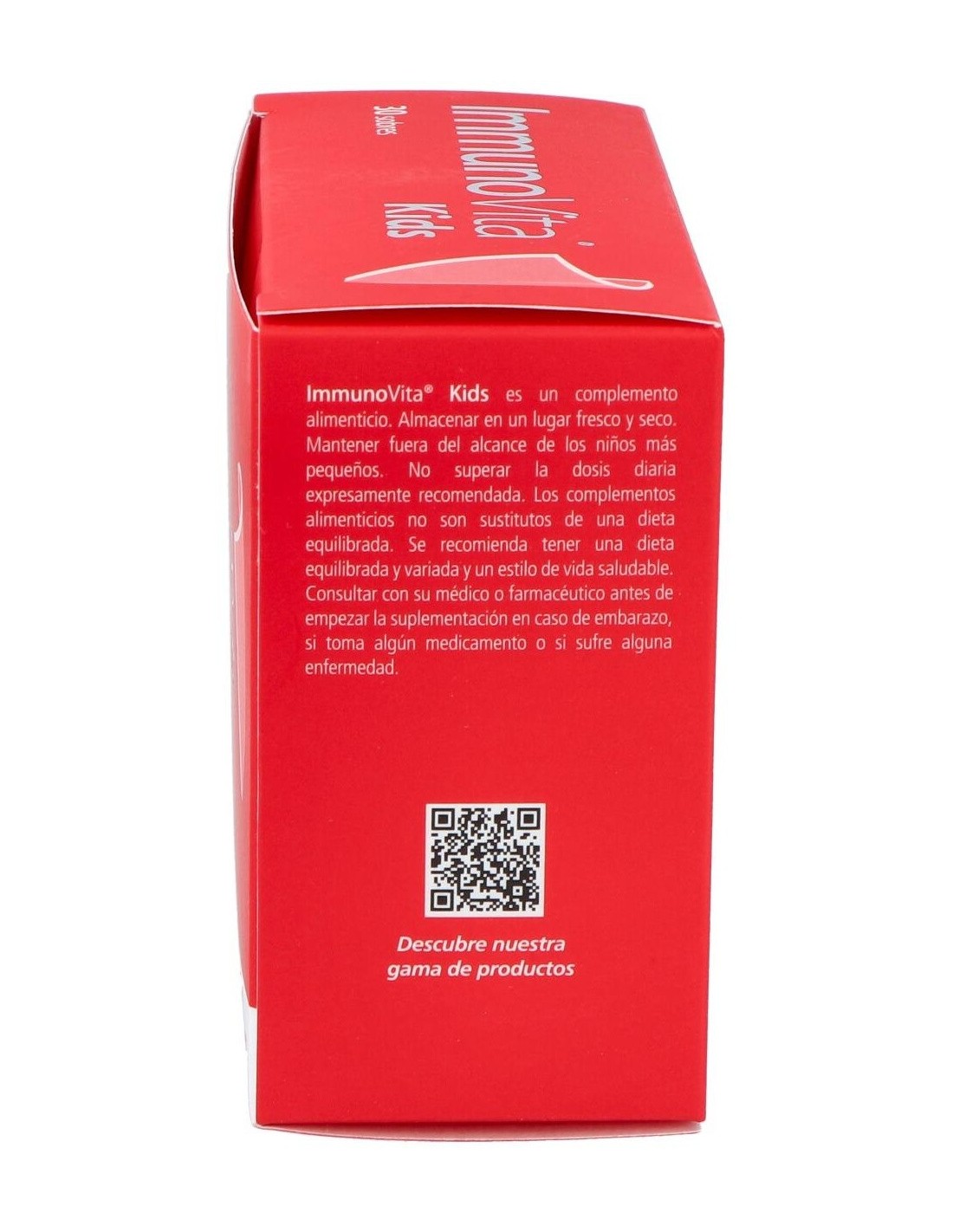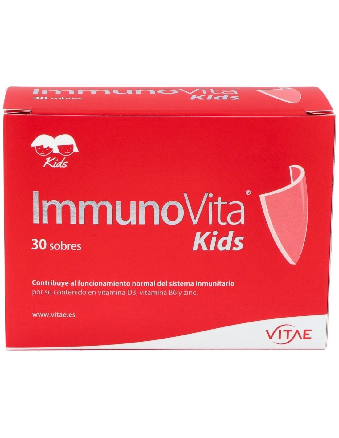 Vitae Immunovita Kids 30 sobres es un complemento alimenticio con betaglucanos purificados de la levadura Saccharomyces cerevisiae, vitamina D3, vitamina B6 y zinc.