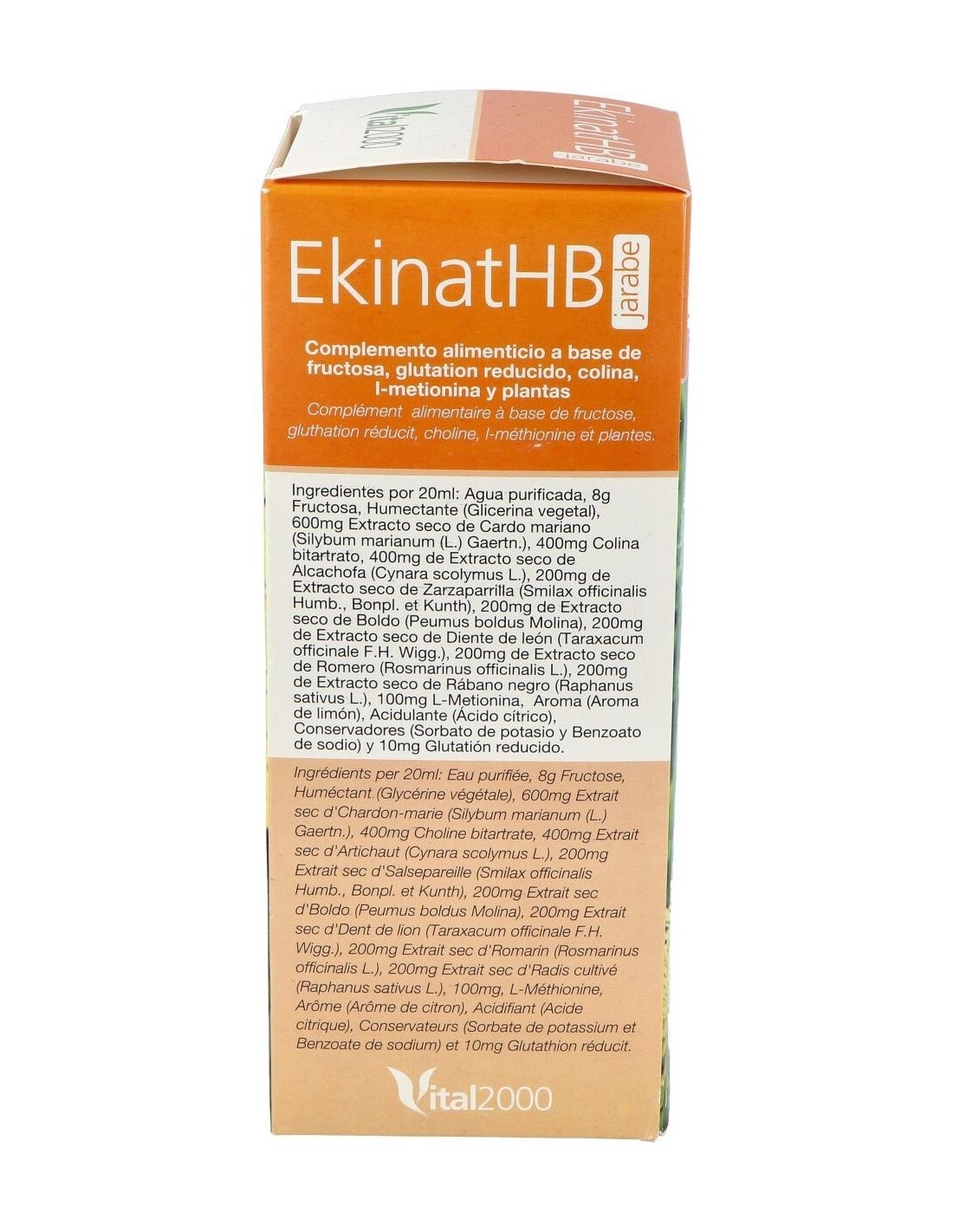 Cardo mariano (Silybum marianum) e.s. 300 mg, alcachofa (Cynara scholimus) e.s. 200 mg, zarzaparrilla (Smilax medica) e.s. 100 mg, boldo (Peumus boldus) e.s. 100 mg, diente de león (Taraxacum officinale) e.s. 100 mg, romero (Rosmarinus officinale) e.s. 100 mg, rábano negro (Raphanus sativus) e.s. 100 mg, colina bitartrato 200 mg, L-metionina 50 mg, L-glutatión reducido 5 mg.