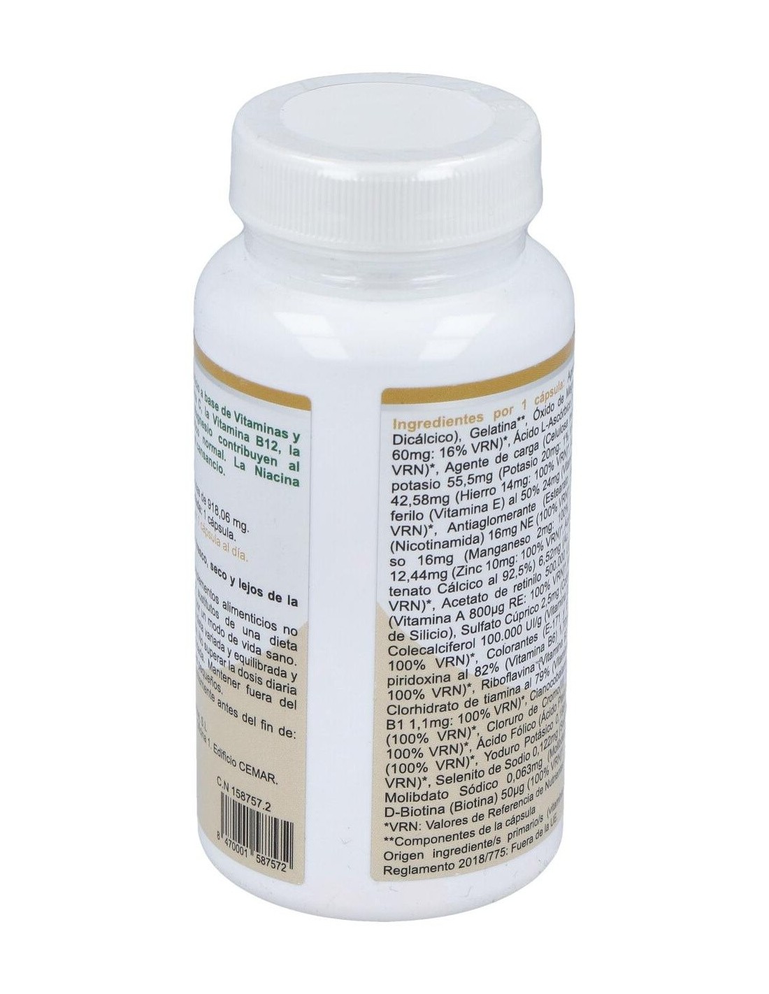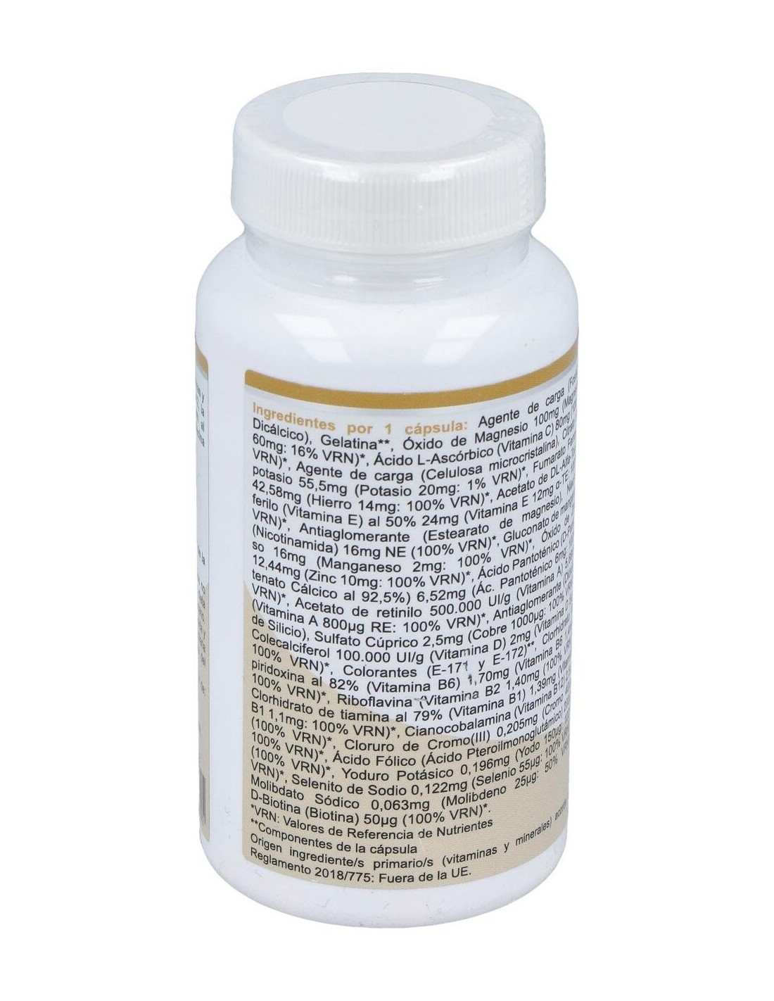 Compuesto multivitamínico con el 100% de las CDR (ajustadas al marco de la U.E.) en vitaminas y minerales.