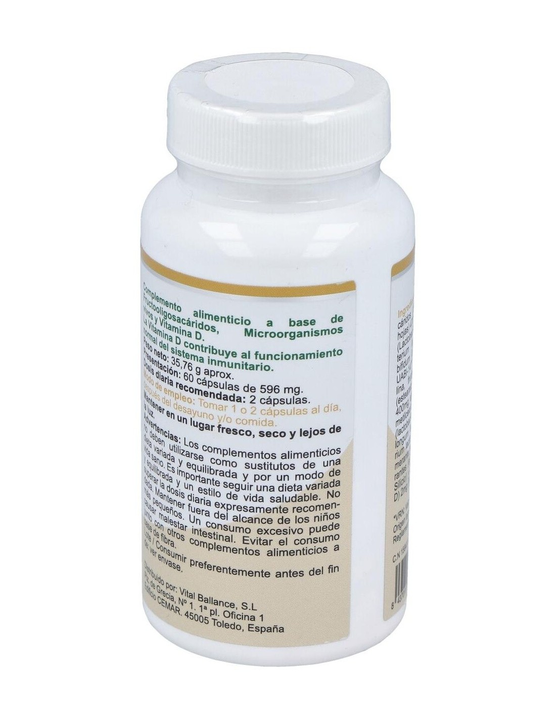 Mezcla probiótica (lactobacillus acidophilus, bifidobacterium longum, bifidobacterium bifidum, bifidobacterium lactis, Fructooligosacáridos, estearato de magnesio y maltodextrina) ... 200 mg