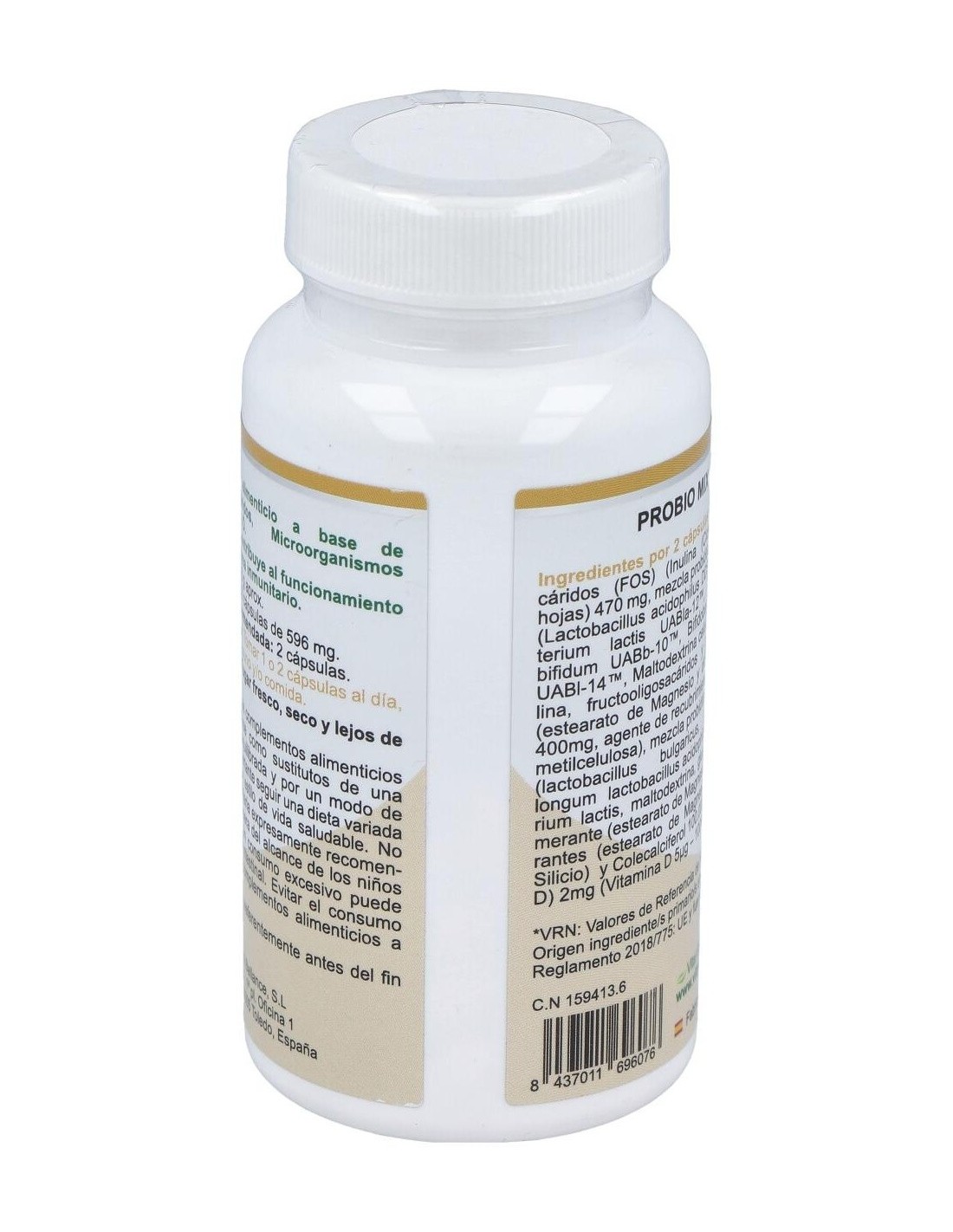 Mezcla probiótica PROBIOMIX (bifidobacterium lactis, lactobacillus bulgaricus, LA-5, BB12, maltodextrina, dextrosa y estearato de magnesio) ... 50 mg