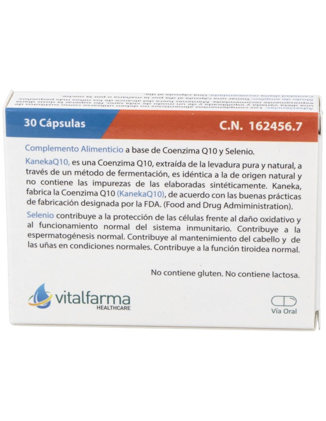 Vitalfarma coenzima Q10 es un complemento alimenticio que, gracias a su fórmula con coenzima Q10, selenio y vitamina B2 ayuda a proteger las células frente al daño oxidativo, además de mantener la piel y mucosas en condiciones normales y al óptimo metabolismo energético y del hierro.